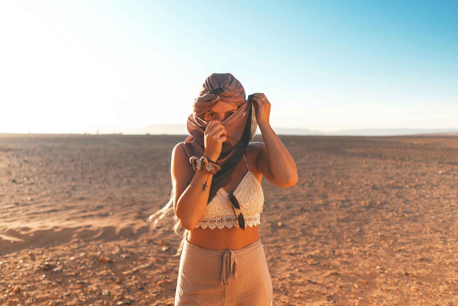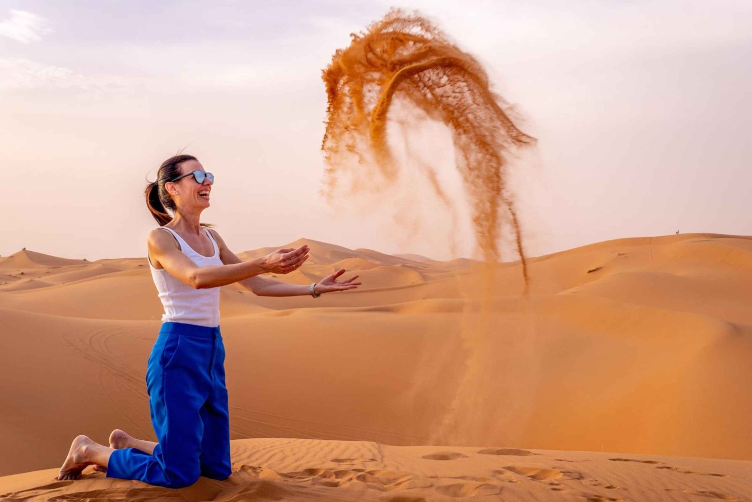 - Bemærk, at denne tur er privat, og at du vil have din egen private chauffør, der taler flere sprog, et privat komfortabelt køretøj og privat indkvartering. Vi bekræfter det nøjagtige afhentningstidspunkt og sted en dag før din tur, omkring kl. 15.00. Hvis din riad er tilgængelig i bil, arrangerer vi afhentning lige udenfor. Ellers angiver vi et mødested i nærheden inden for kort gåafstand fra din indkvartering. Din bagage er velkommen og vil blive opbevaret sikkert i minibussen under ørkencamping. Om vinteren stilles der varme tæpper til rådighed, men det tilrådes at medbringe varmt nattøj, da temperaturen kan falde til 0 °C. Der tilbydes vegetariske og veganske måltider.