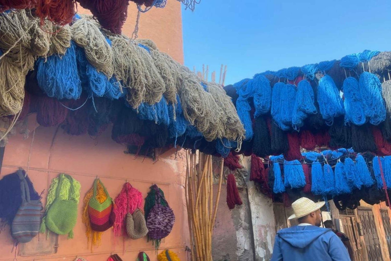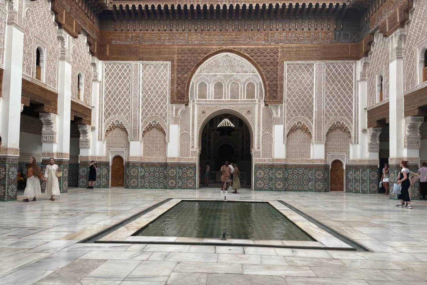 Mød din guide foran Cafe ARGANA, hvor du får en introduktion til din tur sammen med nyttige tips til at forbedre din oplevelse. Din rejse begynder i det pulserende hjerte af Marrakech, det travle hovedtorv, før du begiver dig ind i labyrinten i den middelalderlige medina. Gå gennem livlige håndværkerkvarterer, hvor du vil opdage marokkansk håndværkskunst, fra indviklede tekstiler til elegant keramik. Din guide vil fremhæve disse skatte uden nogen forpligtelse til at foretage køb. Udforsk den spændende historie fra slutningen af det 19. århundrede på Bahia-paladset. Her kom tidligere slaver til magten, og historier om polygami, konkubiner, ære og værdighed udfolder sig inden for de majestætiske mure og forvandler fornuftige mænd til lidenskabelige elskere. Gå forbi en af de ældste hammam'er i området, og lær om dens betydning for den marokkanske kultur. Fortsæt til den farverige krydderiplads, et knudepunkt for handel og tradition, hvor århundreders historie kommer til live i markedspladsens seværdigheder, lyde og dufte. Vælg at udforske et af to ikoniske vartegn: Ben Youssef Madrasa, et mesterværk i islamisk arkitektur prydet med indviklede mosaikker og stukarbejde, eller Den Hemmelige Have, en skjult oase, der viser fantastisk design og historie. Din guide vil give et rigt indblik i betydningen af disse steder og tilbyde en mindeværdig og fordybende oplevelse i hjertet af Marrakech.Includes