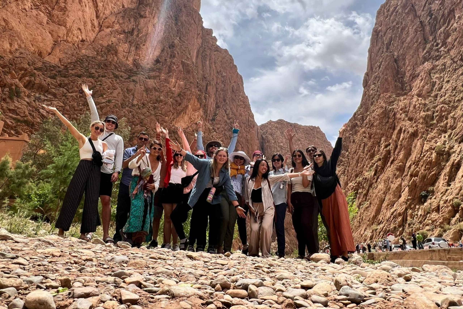 - Denne tur er ikke egnet for børn, fordi den involverer en lang køretur. Vegetarisk og vegansk kost kan imødekommes, hvis det oplyses på bookingtidspunktet. Hvis vejen over Atlasbjergene er spærret om vinteren, er der en alternativ rute via Taroudant; det koster 10 euro ekstra pr. person at tage denne rute. Standard ørkenlejren ligger ca. 200 meter fra det hotel, der er inkluderet i prisen, med et badeværelse uden for teltet. Den luksuriøse ørkenlejr ligger midt i klitterne med badeværelse/bruser inde i teltet. På den sidste dag er transporttiden tilbage til Marrakech ca. 10 timer. Afhentning er ikke mulig fra overnatningssteder, der ligger mere end 7 km fra Jemaa El Fna-pladsen.