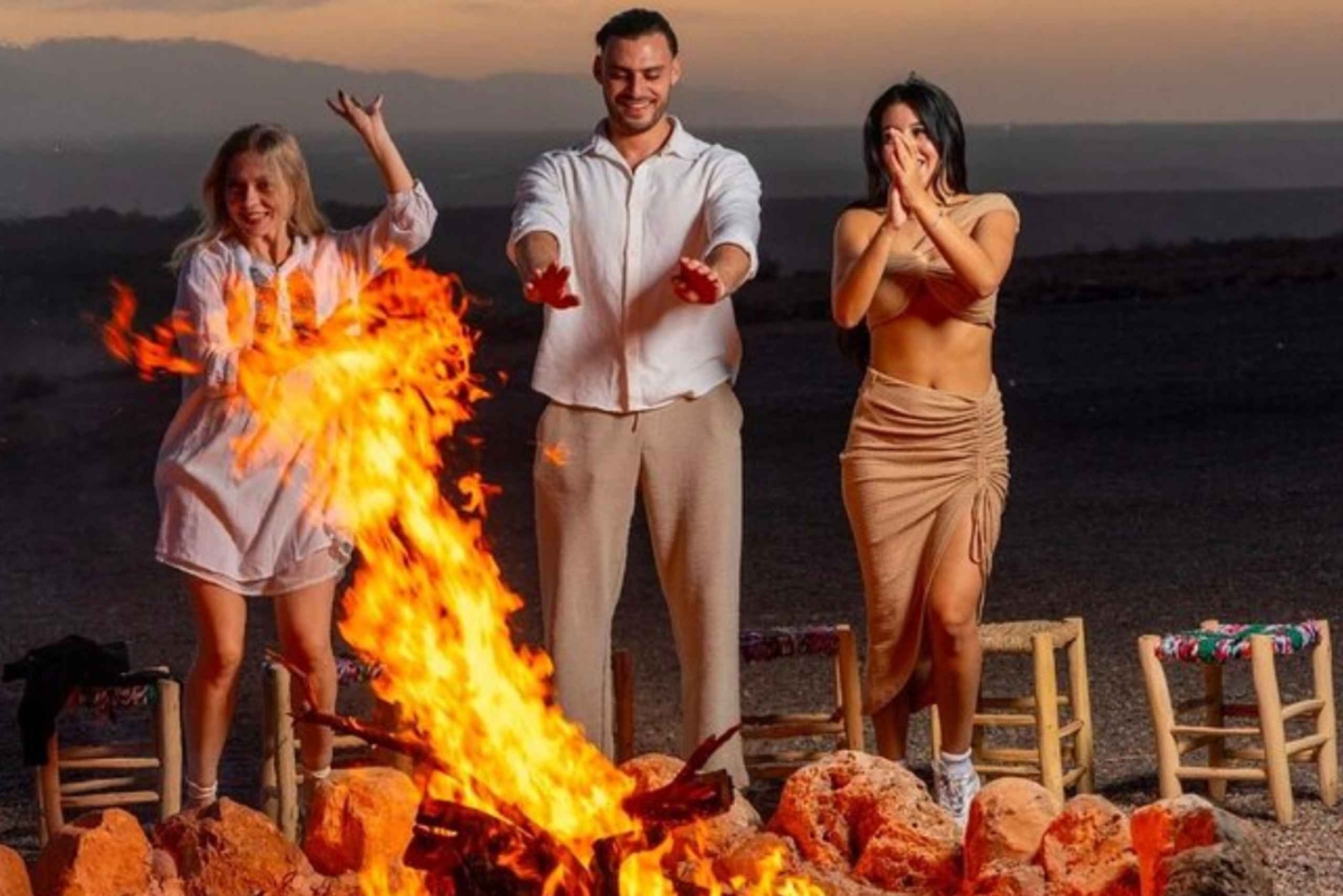 Slip væk fra byens kaos, og nyd en magisk aften i Agafay-ørkenen. Mærk spændingen ved at køre på ATV, rid på en kamel ind i solnedgangen, og nyd en Berber-middag under stjernerne med et fascinerende ildshow.