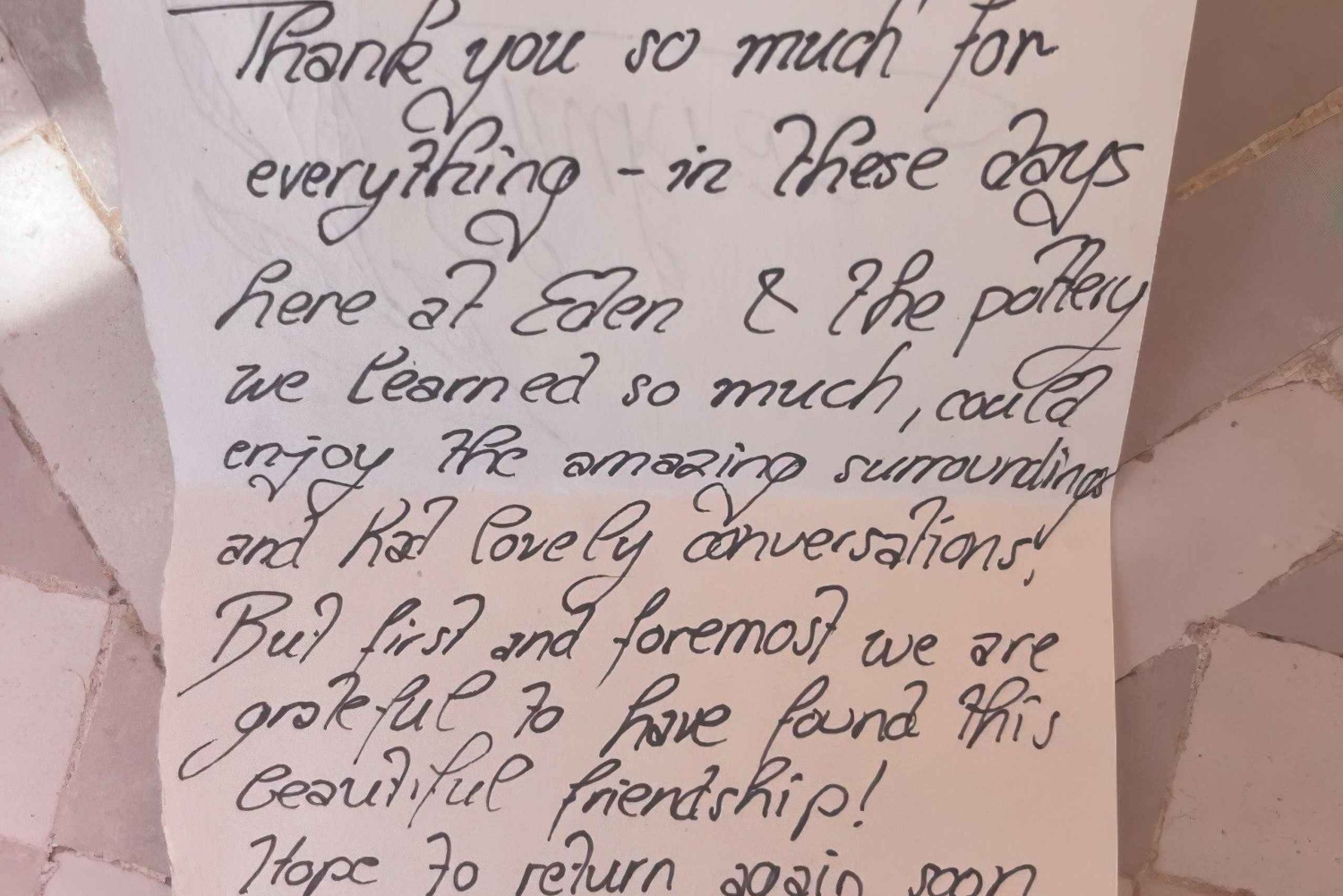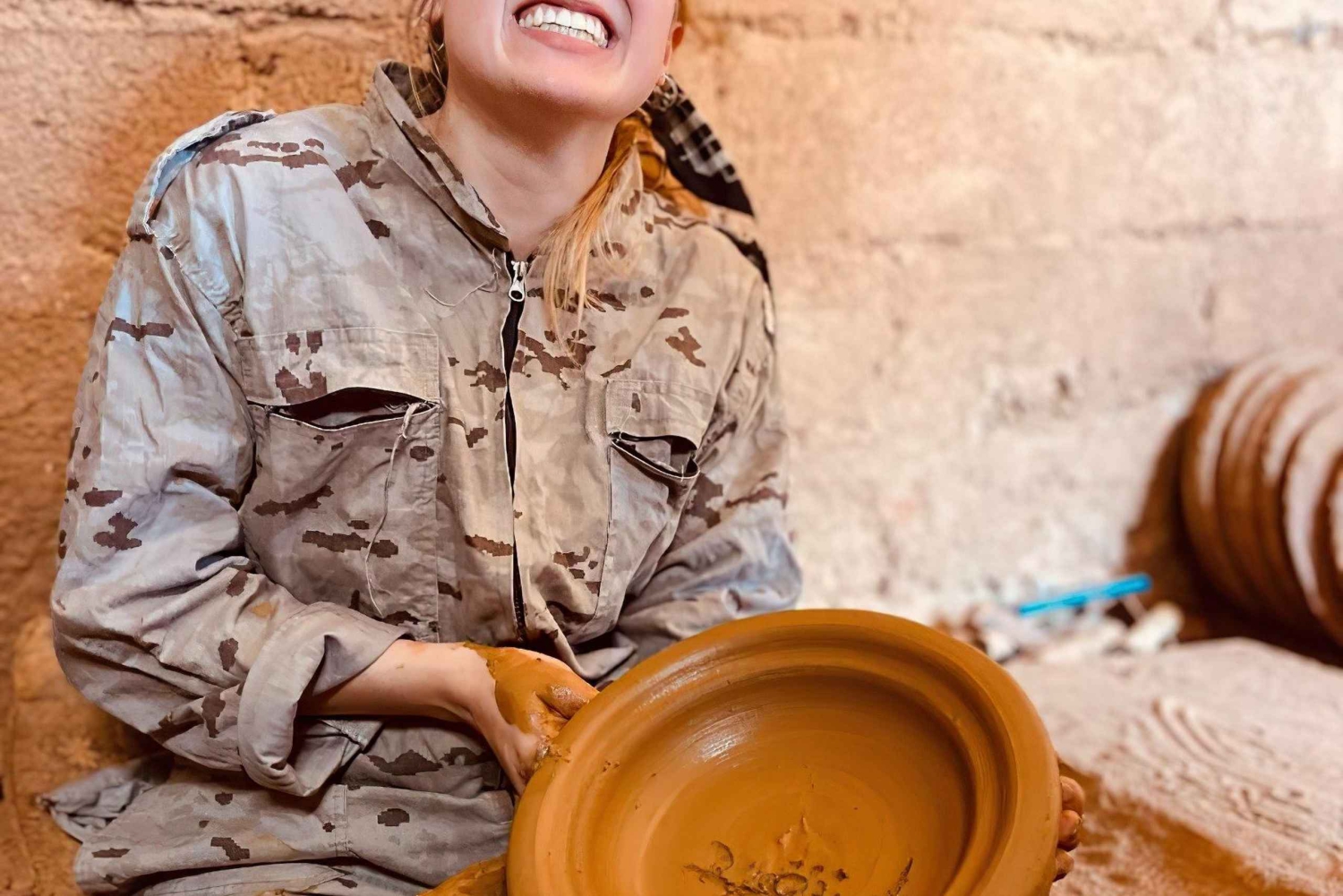 Kursus i keramik. Guide i hjertet af Atlasbjergene. Frokost under oliventræerne på en gård. Drikkevarer (te eller kaffe). Transport t/r fra Marrakech.Easy cancellation