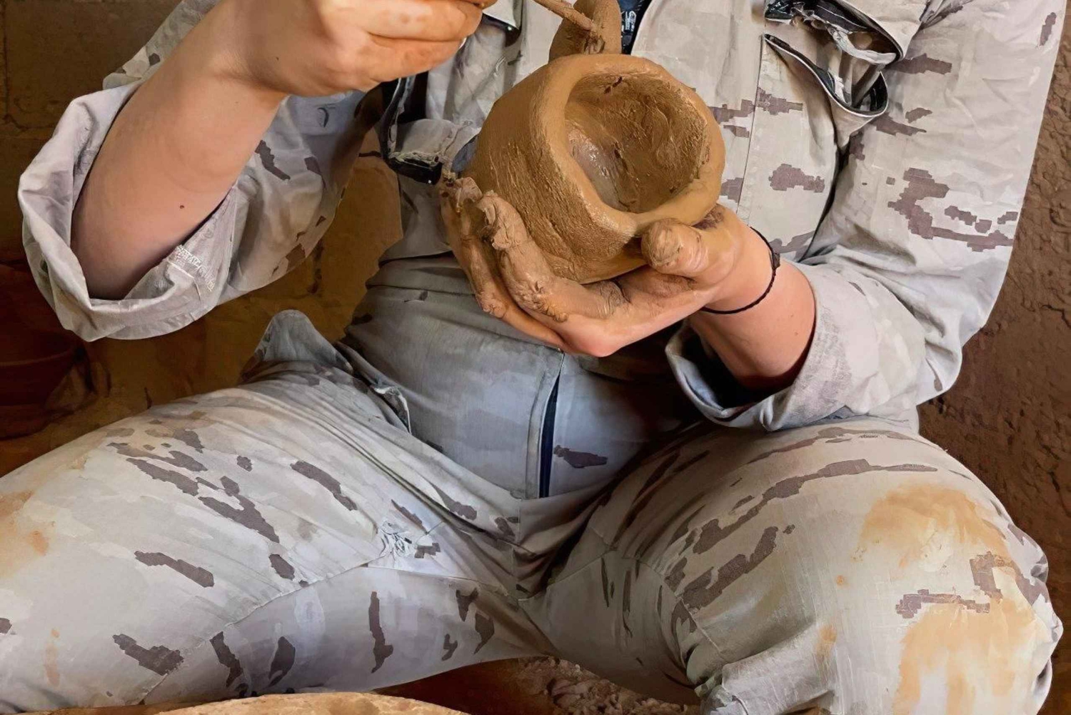 Oplev keramikkens vidundere og fordyb dig i hjertet af Atlasbjergene sammen med berberne. Langt fra Marrakechs travlhed kan du lade dig transportere fra din indkvartering til disse majestætiske bjergtoppe. Dagsprogram: Transport fra dit hotel til Atlasbjergene (~1 time) Keramikoplevelse i et familieværksted, ledsaget af en traditionel morgenmad (~2-3 timer) En tur med fantastisk udsigt over landsbyen Amizmiz (~2 timer); hvis du foretrækker det, er der også mulighed for en tur i en tuk-tuk Traditionel frokost ved poolen i en autentisk villa Transport tilbage til dit hotel Mellem dine hænder og leret opstår der en magisk forbindelse, hvor du med enkle redskaber former kunstværker. At røre ved leret frigør sindet, beroliger kroppen og letter vejrtrækningen. I denne bølge af kreativitet får du øjeblikkelig og varig tilfredshed, der løfter dit humør. Keramik styrker selvtilliden og fremmer kommunikationen i små værkstedsgrupper, hvor ideer og kreativitet mødes. Tag med på et unikt og berigende eventyr, hvor kunst, natur og kultur mødes. Jeg kan love dig, at du vil elske det.Includes