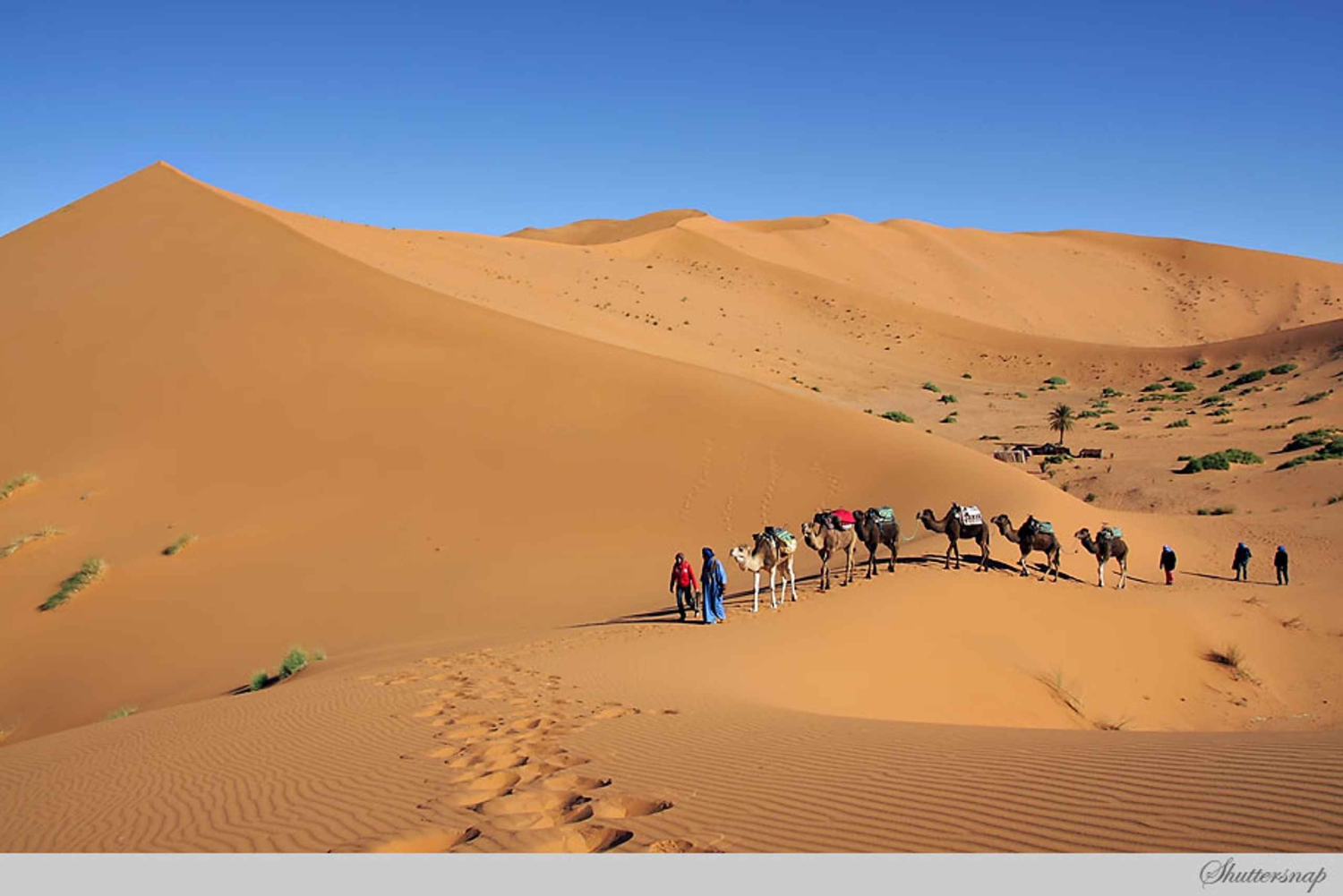 - Kameltrekking in den magischen, windgepeitschten Dünen von Erg Chebbi in der Saharawüste