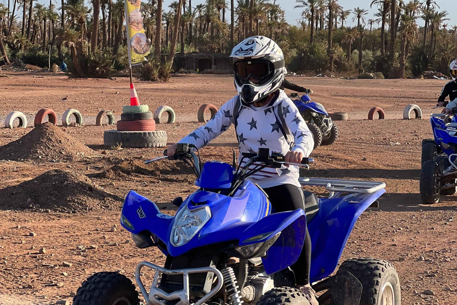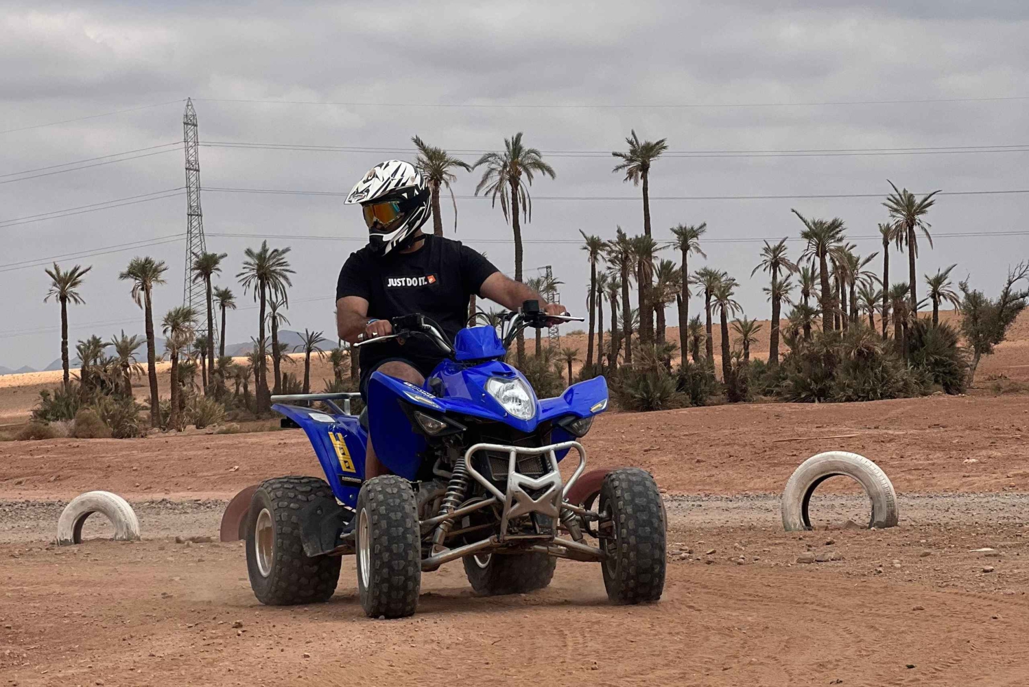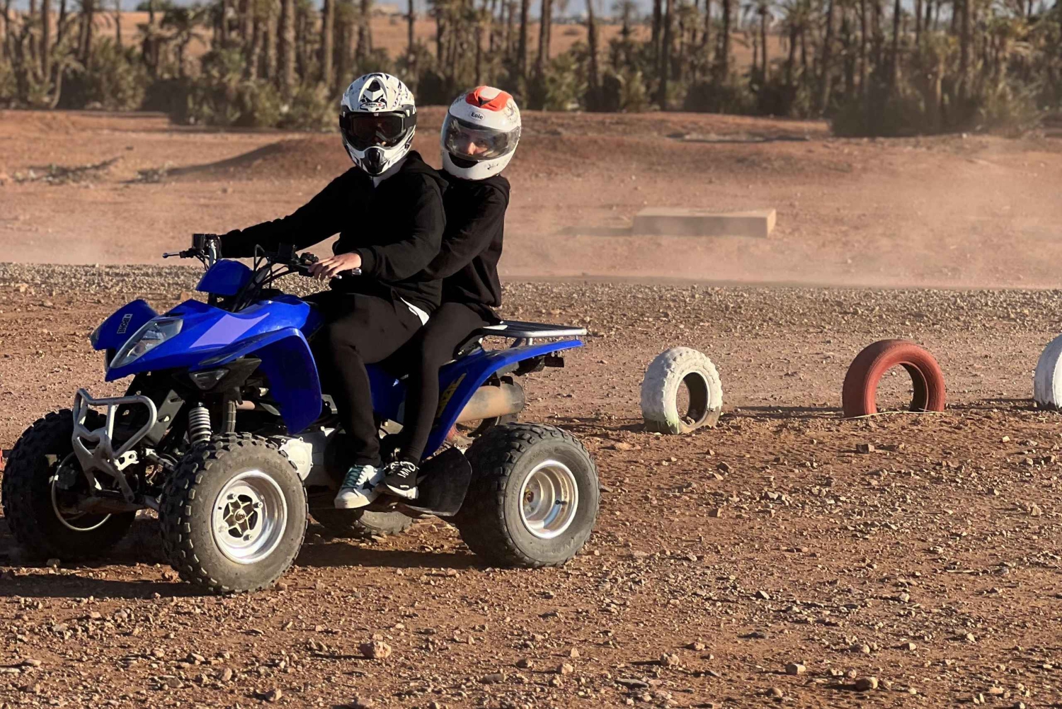 Erlebe die Magie Marrakeschs aus dem Himmel und dem Sand Beginne deinen Tag mit einer unvergesslichen Heißluftballonfahrt über die atemberaubenden Landschaften rund um Marrakesch. Während du sanft durch den frühen Morgenhimmel schwebst, genießt du den Panoramablick auf das Atlasgebirge, Palmenhaine und traditionelle Berberdörfer, die in goldenes Licht getaucht sind. Nach der Landung wirst du mit einem köstlichen Berberfrühstück in einer friedlichen Wüstenumgebung begrüßt - frisches Brot, Honig, Minztee und andere lokale Köstlichkeiten, die dich für dein nächstes Abenteuer stärken. Als Nächstes machst du dich auf zu einer aufregenden Quad-Tour durch die raue Wüstenlandschaft. Fahre über malerische Pfade, offene Hochebenen und staubige Wege, umgeben von der Schönheit der marokkanischen Naturlandschaft. Egal, ob du ein Neuling oder ein erfahrener Fahrer bist, die Fahrt wird an dein Niveau angepasst, damit du maximalen Spaß und Sicherheit hast. Während der gesamten Tour wirst du von freundlichen, professionellen Guides begleitet, die für deine Sicherheit, deinen Komfort und deinen Spaß sorgen. Die Tour ist ideal für Paare, Familien, Alleinreisende und kleine Gruppen, die ein authentisches Abenteuer abseits des Stadttrubels suchen.Includes