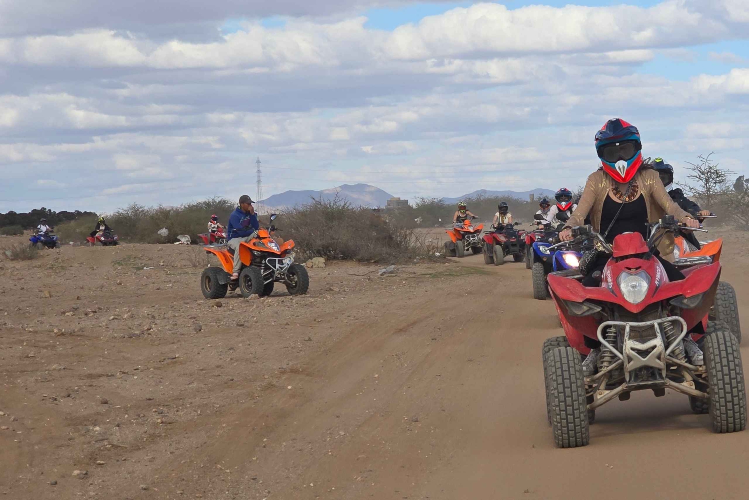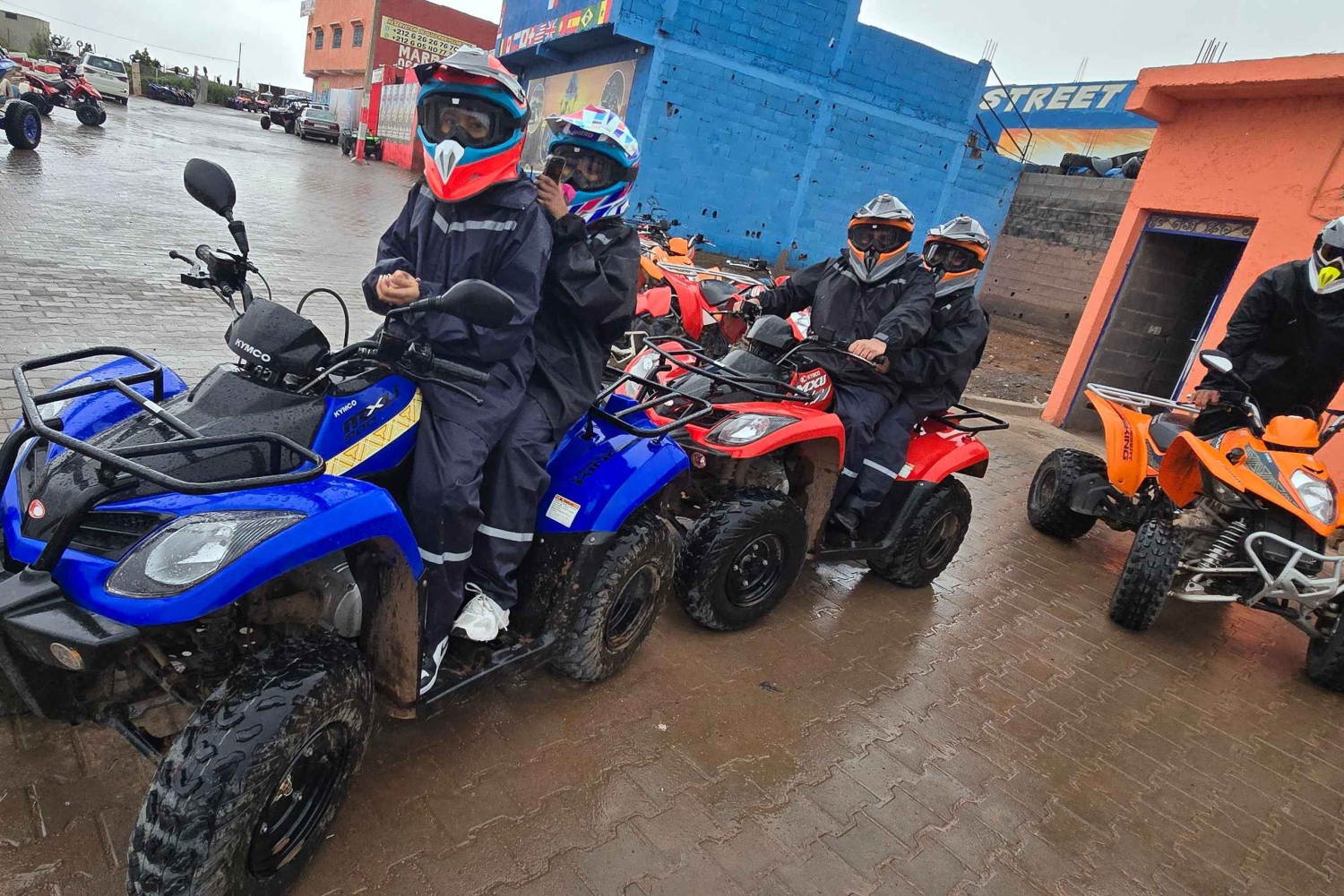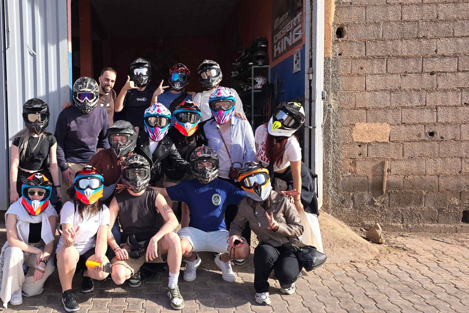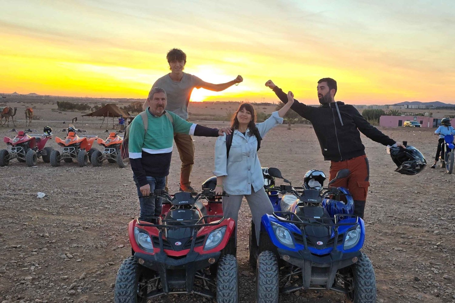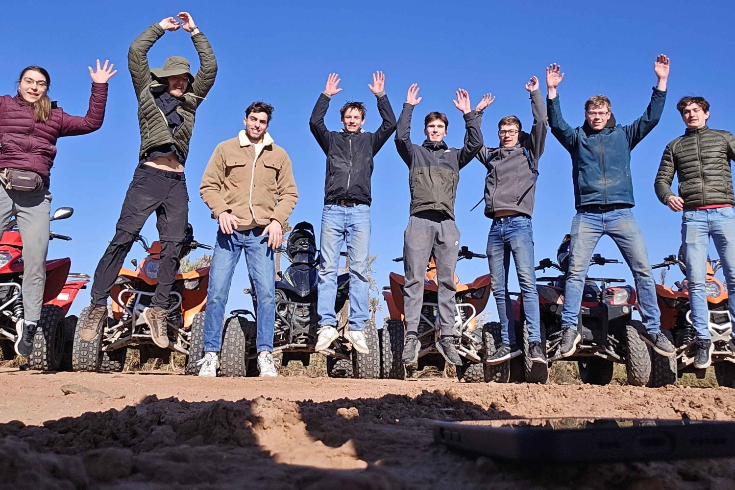 Entfliehe dem Trubel von Marrakesch im Komfort eines klimatisierten Autos und mach dich auf den Weg in die endlose Wüste in der Nähe. Von hier aus begibst du dich mit dem Quad auf eine aufregende Tour durch die Wüste Jbilets, die für ihre attraktive Beleuchtung bekannt ist. Entfliehe, während du mit deinem einheimischen Führer die faszinierende Geschichte und Kultur dieser einzigartigen Region erkundest. Nur 30 Minuten vom Zentrum Marrakeschs entfernt, entdeckst du das wahre Marokko und lernst die Einheimischen kennen. Entdecke die Wüstenregion der Jbilets und genieße den Blick auf das Atlasgebirge. Besuche ein kleines Dorf, um dir die Beine zu vertreten, heißen Tee zu schlürfen und die Gastfreundschaft der Berber zu genießen. Hier zeigen dir die Guides gerne einige der besten Wanderwege und Plätze in der Gegend. Auf Wunsch kann diese Tour auch auf dich und deine Gruppe zugeschnitten werden, wenn du Lust auf Erkundung und Abenteuer hast. Entscheide dich für eine Erklärung des Programms, eine Einweisung in die Ausrüstung und ein Quad-Fahrtraining, um maximale Sicherheit während der Fahrten zu gewährleisten.Includes