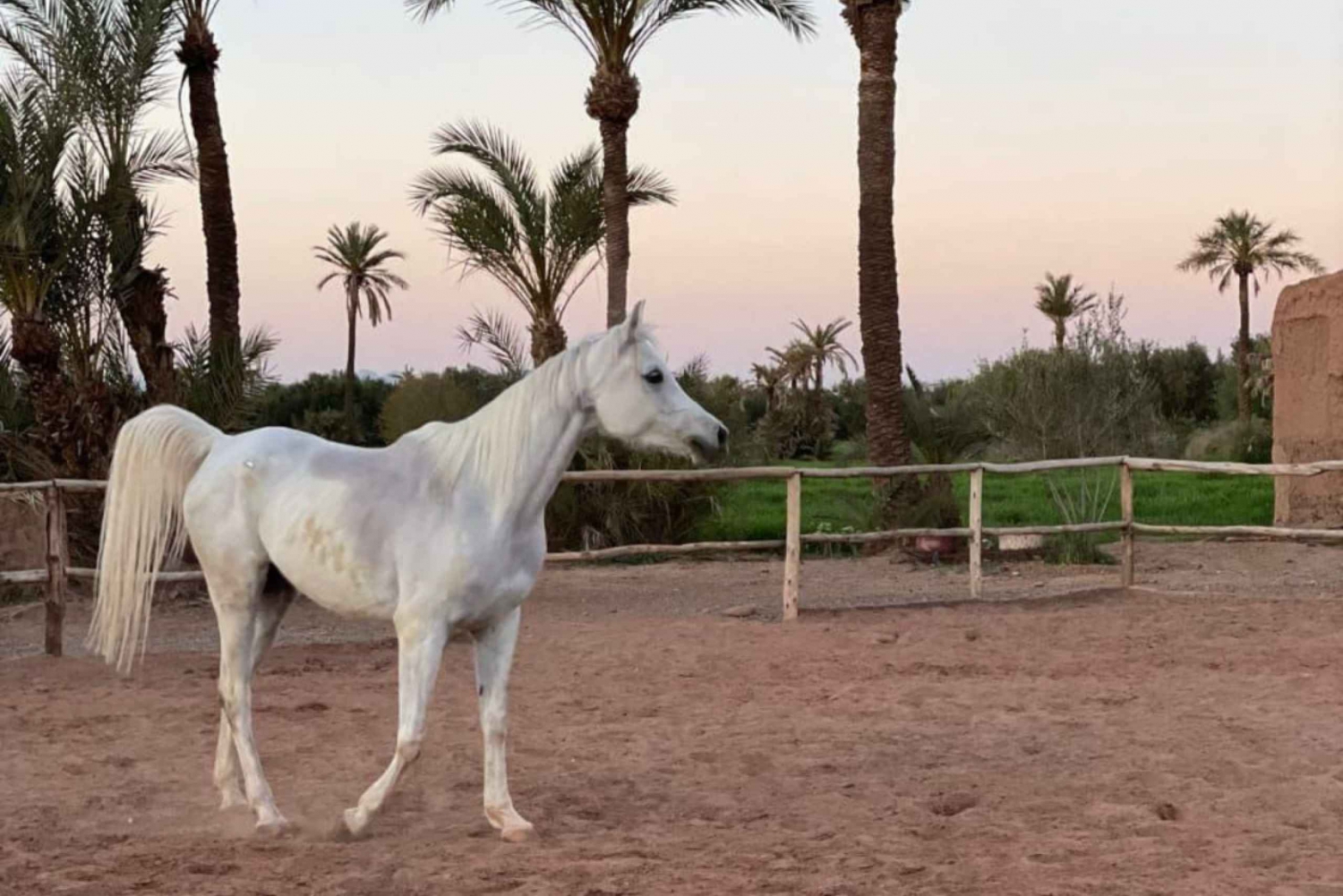 Reise zu einer Öko-Lodge außerhalb von Marrakesch und beginne mit einem Pfefferminztee. Steig auf dein Pferd und folge deinem Führer durch die Palmeraie, einen Palmenhain in der Wüste. Bestaune das Atlasgebirge und die vielen traditionellen Berberdörfer an diesem unglaublichen Ort. Am Ende kehrst du zu deinem Hotel zurück. Die Aktivität beginnt mit der Abholung von deinem Hotel in Marrakech. Anschließend erreichst du die Öko-Lodge, die etwa 10 km von der Stadt entfernt liegt. Trinke eine Tasse Minztee am Pool, wenn du ankommst. Dann sattelst du dein Pferd und reitest durch die Palmeraie, eine Palmenoase. Folge deinem Führer und genieße die Aussicht. Bewundere die vielen Palmen und sieh dir authentische Berberdörfer an. Atme die frische Luft ein, während du mit deinem Guide die Gegend auf dem Pferderücken erkundest. Nach 2 Stunden ist dein Ausritt zu Ende. Am Ende der Aktivität wirst du zurück zu deinem Hotel in Marrakesch gebracht.Includes