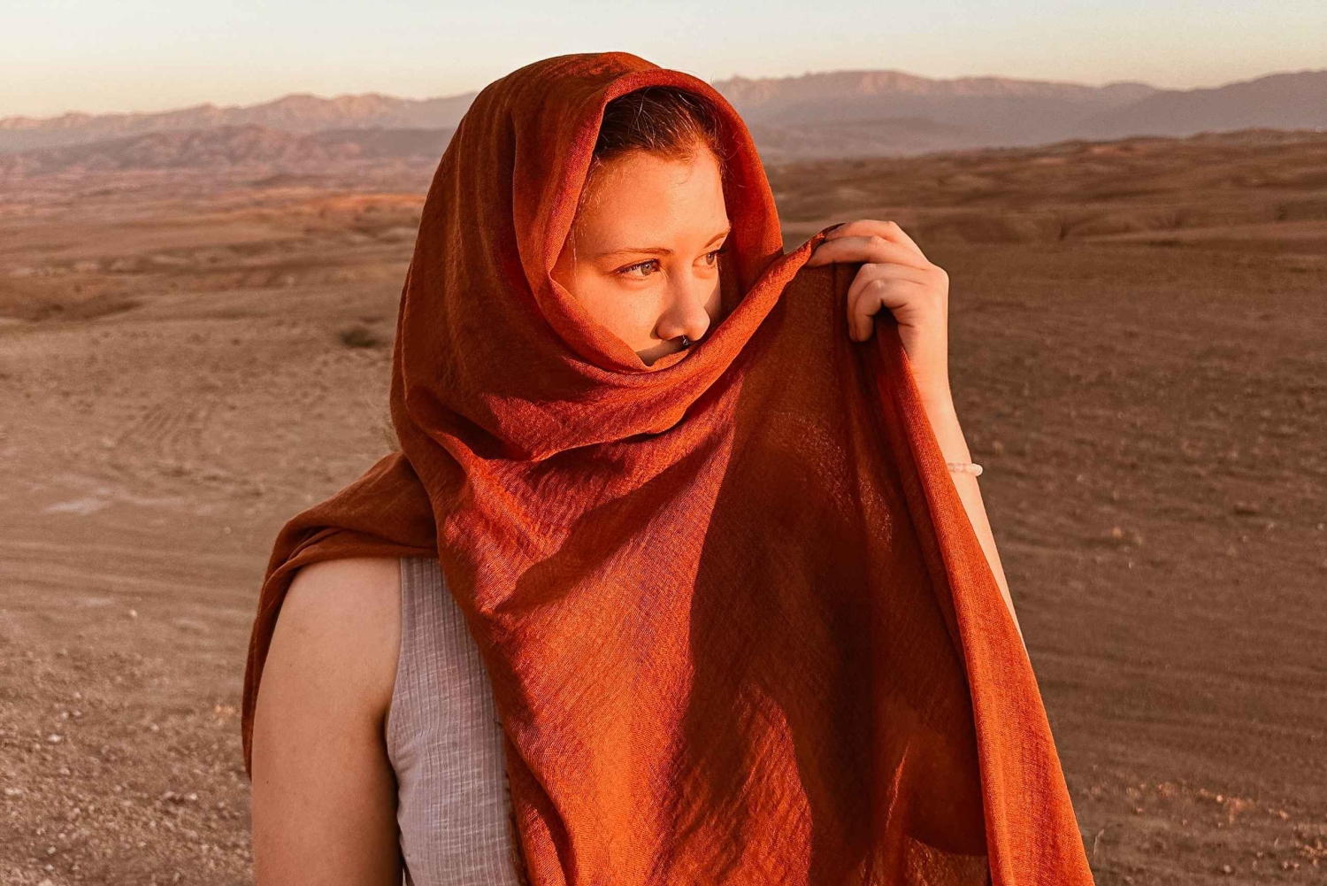 Entfliehen Sie dem Trubel von Marrakesch mit einer unvergesslichen Tagestour in die atemberaubende Agafay-Wüste, wo Abenteuer, Kultur und Entspannung zu einem einmaligen Erlebnis verschmelzen. Diese All-inclusive-Reise bietet einige der besten Wüstensafaris und familienfreundlichen Aktivitäten, die die Region zu bieten hat. Entspannen Sie sich bei einer ruhigen Kamelritt-Tour und genießen Sie einen 20-minütigen Ritt auf einem Dromedar durch die goldene Landschaft. Dies ist die perfekte Gelegenheit, um Fotos zu machen und die Schönheit der Wüste zu bewundern, während die Sonne am Horizont untergeht. Gönnen Sie sich nach dem aktiven Tag einen luxuriösen Abend mit einem unserer authentischen Dinner-Pakete. Genießen Sie ein luxuriöses Abendessen in der Wüste unter dem Sternenhimmel und lassen Sie sich von den reichhaltigen Speisen und Getränken der marokkanischen Küche verwöhnen. Von Tajines bis hin zu Minztee ist dieses Erlebnis ebenso geschmackvoll wie malerisch. Der Abend geht weiter mit faszinierenden Dinner-Shows, darunter Live-Musik, eine traditionelle Darbietung und eine atemberaubende Feuershow, die die Wüste zum Leben erweckt. Für diejenigen, die Ruhe suchen, ist die friedliche Atmosphäre unter dem klaren Nachthimmel ideal zum Sternegucken oder einfach zum Entspannen. Egal, ob du auf der Suche nach Abenteuer, kulturellem Eintauchen oder Wellness & Spas bist, um dich nach deiner Reise zu entspannen, dieses Agafay-Wüstenerlebnis hat für jeden etwas zu bieten – auch für Paare, Freunde und Familien. Du kannst sogar ein bisschen Glanz und Glamour bei Wüstenshows und Musicals erleben, die das marokkanische Erbe feiern.Includes