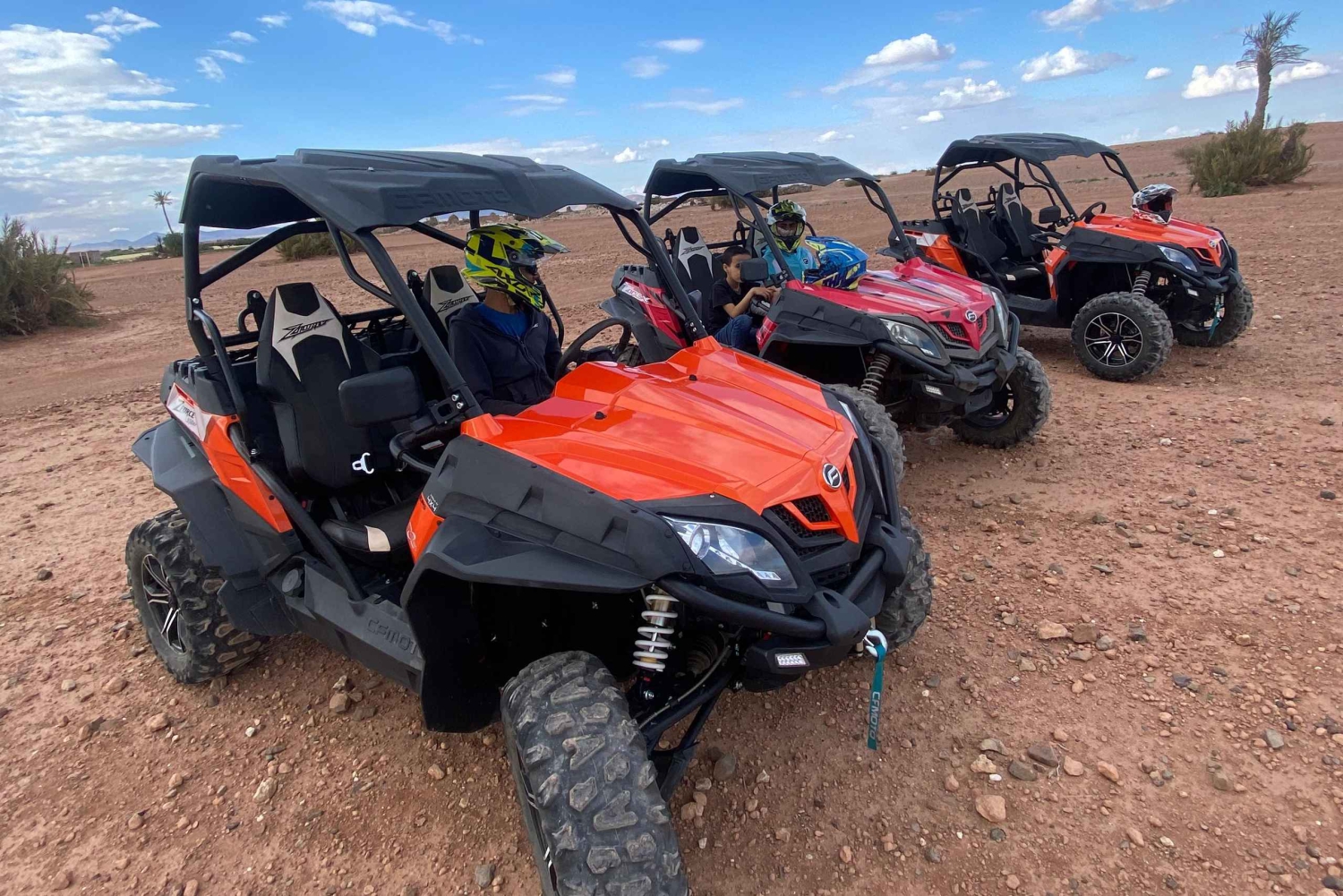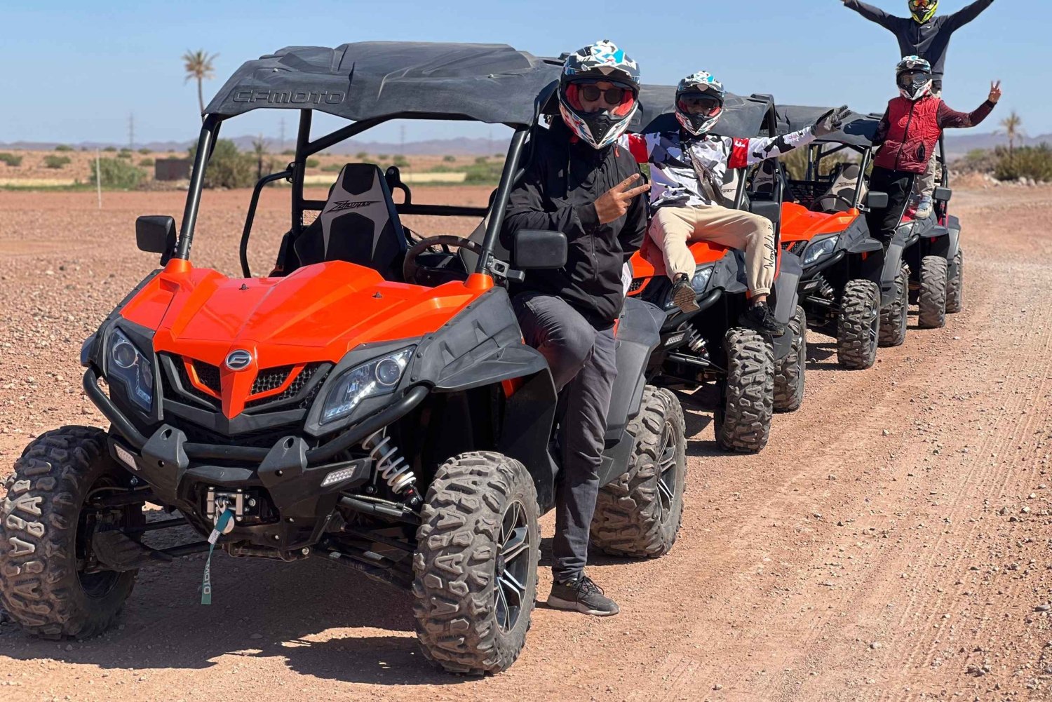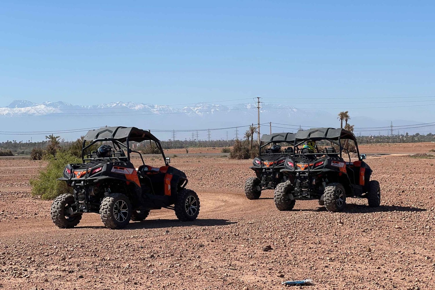Quad Exception te ofrece una emocionante experiencia de recorrido en buggy por los impresionantes paisajes del desierto de Marrakech y los palmerales. Tu aventura comienza con una cómoda recogida en tu hotel o riad en Marrakech, incluida en el precio. Tras un breve trayecto en coche, llegarás a la base, donde un guía profesional te dará la bienvenida y te proporcionará toda la información de seguridad y las instrucciones para conducir el buggy. Una vez equipado y listo, emprenderás tu recorrido guiado por los escarpados senderos del desierto y los pintorescos palmerales, descubriendo la belleza del campo marroquí. Por el camino, disfrutarás de vistas panorámicas de las montañas del Atlas y pasarás por pueblos bereberes tradicionales enclavados en un entorno exuberante. A mitad del recorrido, harás una parada para tomar un té a la menta tradicional marroquí y capturar impresionantes fotos del paisaje. A continuación, continúa tu aventura por sinuosos caminos y pistas arenosas, sintiendo la emoción de cada curva y cada colina. Al final del recorrido, tu conductor te llevará de vuelta a tu alojamiento, asegurándote un final tranquilo y sin preocupaciones para esta experiencia inolvidable. Este tour en buggy es ideal para los amantes de la aventura, las familias y los principiantes que buscan una actividad al aire libre divertida y envolvente cerca de Marrakech.Includes