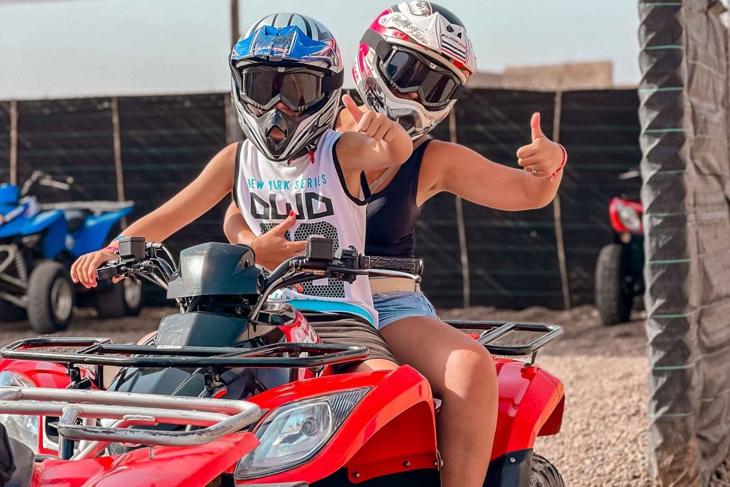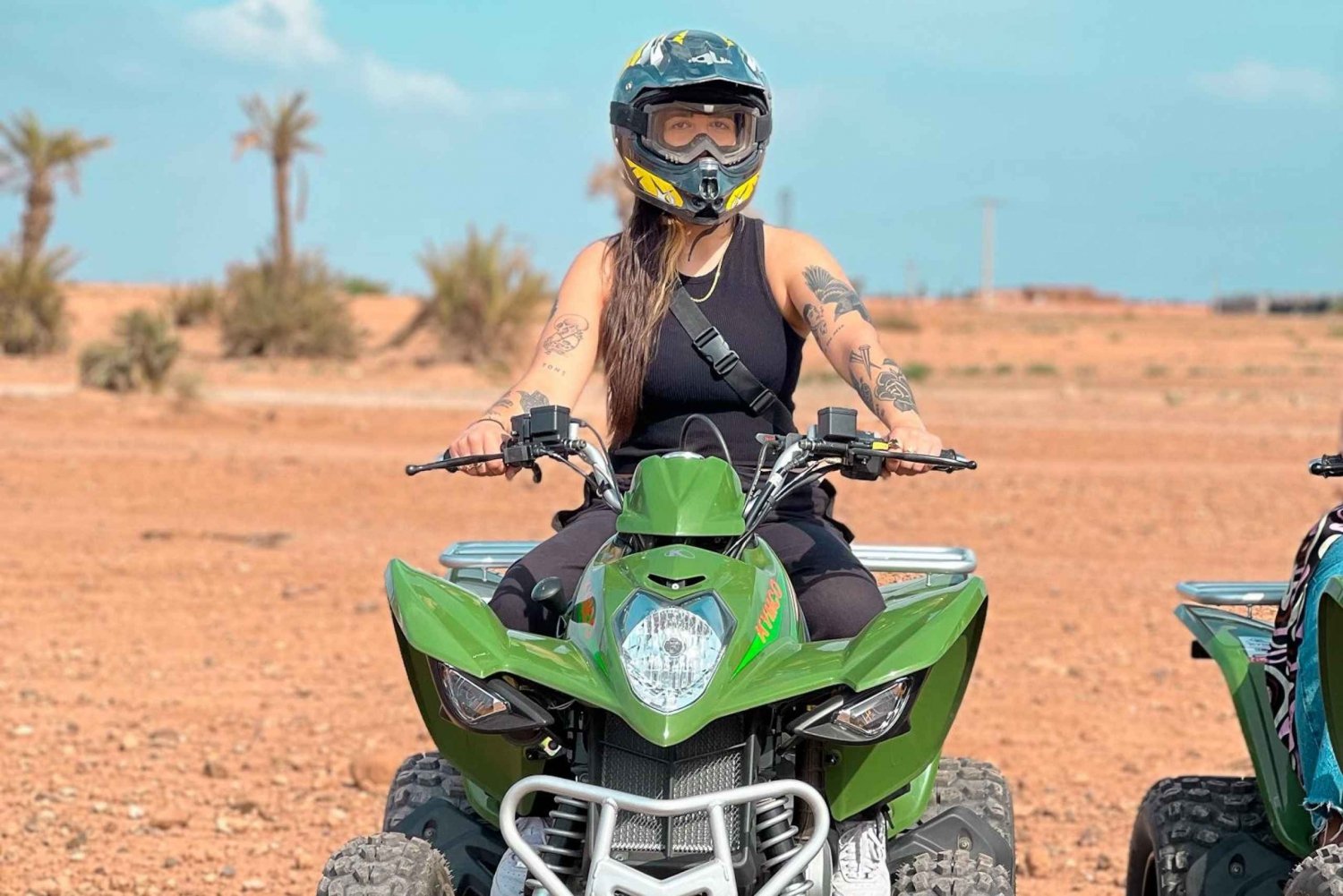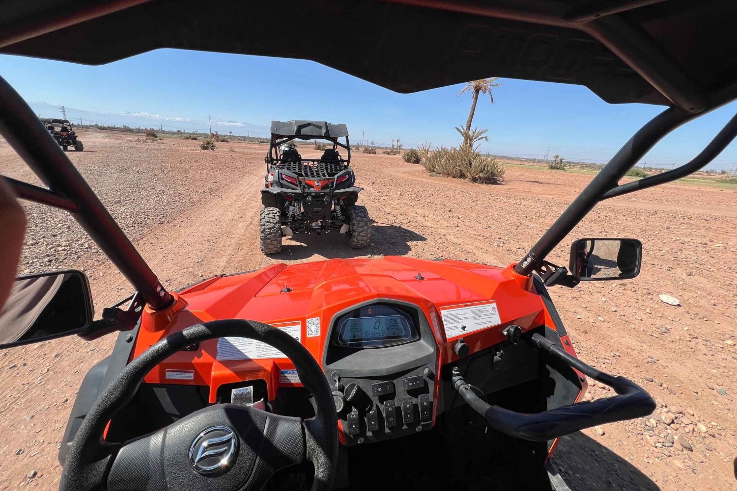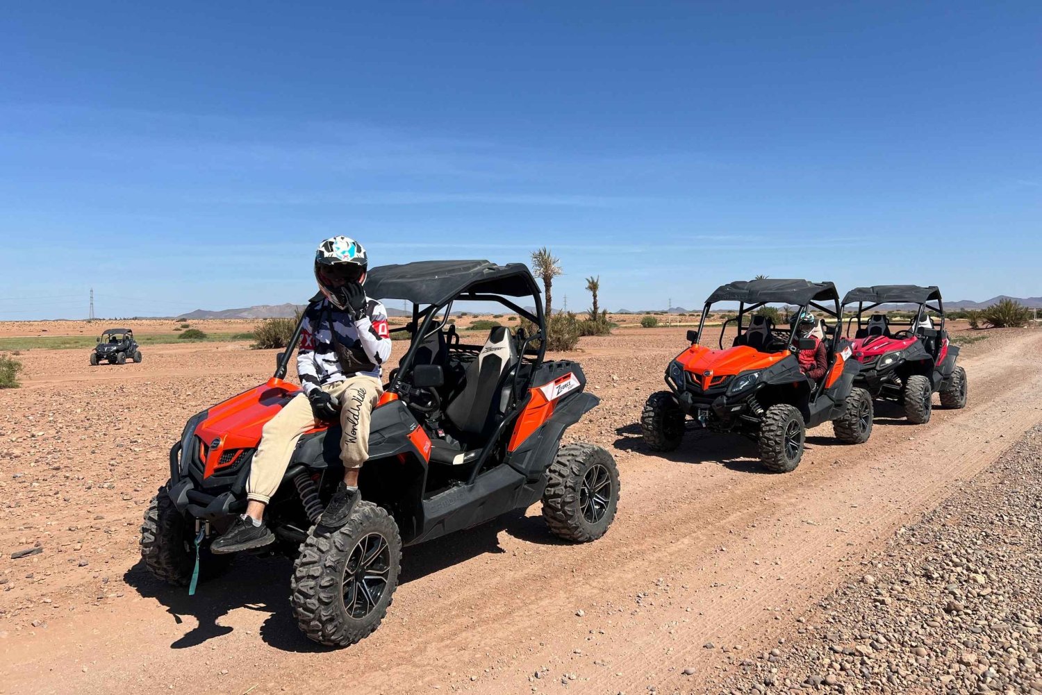 Quad Exception te ofrece una emocionante experiencia de recorrido en buggy por los impresionantes paisajes del desierto de Marrakech y los palmerales. Tu aventura comienza con una cómoda recogida en tu hotel o riad en Marrakech, incluida en el precio. Tras un breve trayecto en coche, llegarás a la base, donde un guía profesional te dará la bienvenida y te proporcionará toda la información de seguridad y las instrucciones para conducir el buggy. Una vez equipado y listo, emprenderás tu recorrido guiado por los escarpados senderos del desierto y los pintorescos palmerales, descubriendo la belleza del campo marroquí. Por el camino, disfrutarás de vistas panorámicas de las montañas del Atlas y pasarás por pueblos bereberes tradicionales enclavados en un entorno exuberante. A mitad del recorrido, harás una parada para tomar un té a la menta tradicional marroquí y capturar impresionantes fotos del paisaje. A continuación, continúa tu aventura por sinuosos caminos y pistas arenosas, sintiendo la emoción de cada curva y cada colina. Al final del recorrido, tu conductor te llevará de vuelta a tu alojamiento, asegurándote un final tranquilo y sin preocupaciones para esta experiencia inolvidable. Este tour en buggy es ideal para los amantes de la aventura, las familias y los principiantes que buscan una actividad al aire libre divertida y envolvente cerca de Marrakech.Includes