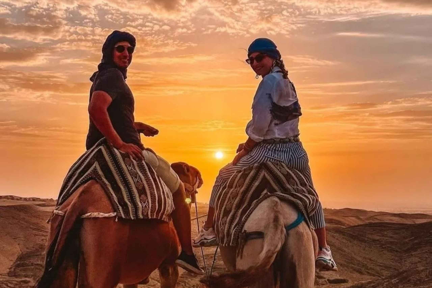 - Disfruta de una deslumbrante puesta de sol en el desierto a lomos de un camello mientras cabalgas