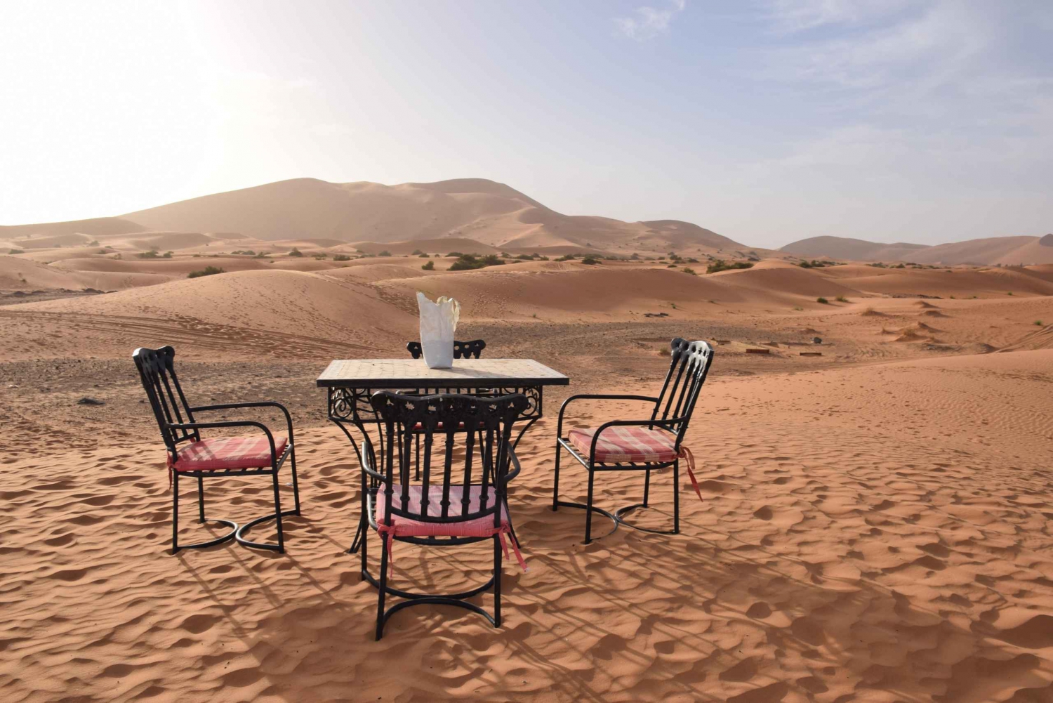 - Duerme en cómodas tiendas de campaña de lujo en el interior de las dunas de Erg Chebbi de Merzouga