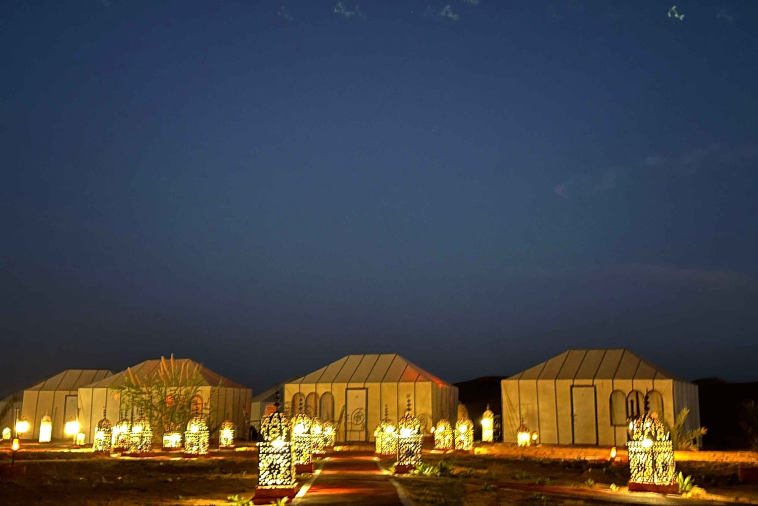 - Noche en un lujoso campamento bereber bajo las estrellas con cena tradicional y música.