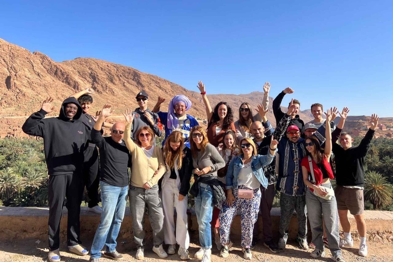 Deja atrás el bullicio de Marrakech y adéntrate en el corazón del majestuoso Sáhara marroquí. Esta inolvidable aventura de 3 días a Merzouga te invita a descubrir antiguas kasbahs, dunas doradas y la cálida hospitalidad bereber. Viaja por la legendaria Ruta de las 1000 Kasbahs y haz una parada para explorar el pueblo fortificado de Ait Ben Haddou, lugar declarado patrimonio de la humanidad por la UNESCO y escenario de muchas películas famosas. Atraviesa las impresionantes gargantas del Dades y del Todgha, donde imponentes formaciones rocosas rodean tranquilos valles de palmeras. Al atardecer, monta en camello y recorre las interminables dunas del Erg Chebbi. El desierto brilla con tonos naranjas y dorados mientras te diriges a un campamento nómada tradicional. Allí te recibirán con té a la menta, una comida caliente y música en directo junto al fuego bajo un cielo estrellado. Levántate temprano para disfrutar de un amanecer que nunca olvidarás: silencio, luz y el suave viento que da forma a las dunas. Después del desayuno, regresa a través de los paisajes del Atlas con el corazón lleno de historias y recuerdos. Esto es más que un viaje. Es una conexión con el alma de Marruecos. Día 1: Marrakech - Ait Ben Haddou - Valle del Dades • Salida temprano de Marrakech y cruce de las montañas del Alto Atlas por el puerto de Tizi n'Tichka (2260 m), disfrutando de vistas panorámicas y pueblos bereberes tradicionales a lo largo del camino. • Visita el famoso Ait Ben Haddou, lugar declarado patrimonio de la humanidad por la UNESCO y escenario de películas como Gladiator y Juego de Tronos. • Parada para almorzar cerca de Ouarzazate, el «Hollywood de África». • Continuación por el Valle de las Rosas y entrada en el Valle del Dades, donde pasarás la noche en un hotel o casa de huéspedes local. Alojamiento: Hotel en el valle del Dades ️ Comidas incluidas: Cena ⸻ Día 2: Valle del Dades - Gargantas del Todgha - Merzouga - Campamento en el desierto del Sáhara • Después del desayuno, recorre las espectaculares gargantas del Todgha, el cañón más alto de Marruecos, con tiempo para pasear y hacer fotos. • Continuación hacia Merzouga, pasando por oasis de palmeras datileras y pueblos desérticos. • Llegada al borde de las dunas y comienzo de la excursión en camello hacia el corazón de las dunas de Erg Chebbi, guiados por un experimentado guía. • Contempla la puesta de sol sobre el Sáhara antes de llegar al campamento bereber, donde disfrutarás de una cena tradicional, tambores en directo y observación de las estrellas junto al fuego. Alojamiento: campamento bereber en el desierto de Merzouga. Incluye: paseo en camello. ️ Comidas incluidas: desayuno y cena. ⸻ Día 3: Merzouga – Alnif – Tizi n'Tichka – Marrakech • Despiértate temprano para contemplar la mágica salida del sol sobre las dunas. • Disfruta del desayuno en el campamento y luego monta en camello o vuelve en 4x4 a Merzouga. • Comienza tu viaje de regreso a Marrakech a través del valle del Draa y las montañas del Alto Atlas, con paradas panorámicas en el camino. • Llegada a Marrakech por la tarde (normalmente entre las 19:00 y las 20:00). ️ Comidas incluidas: desayuno.Includes