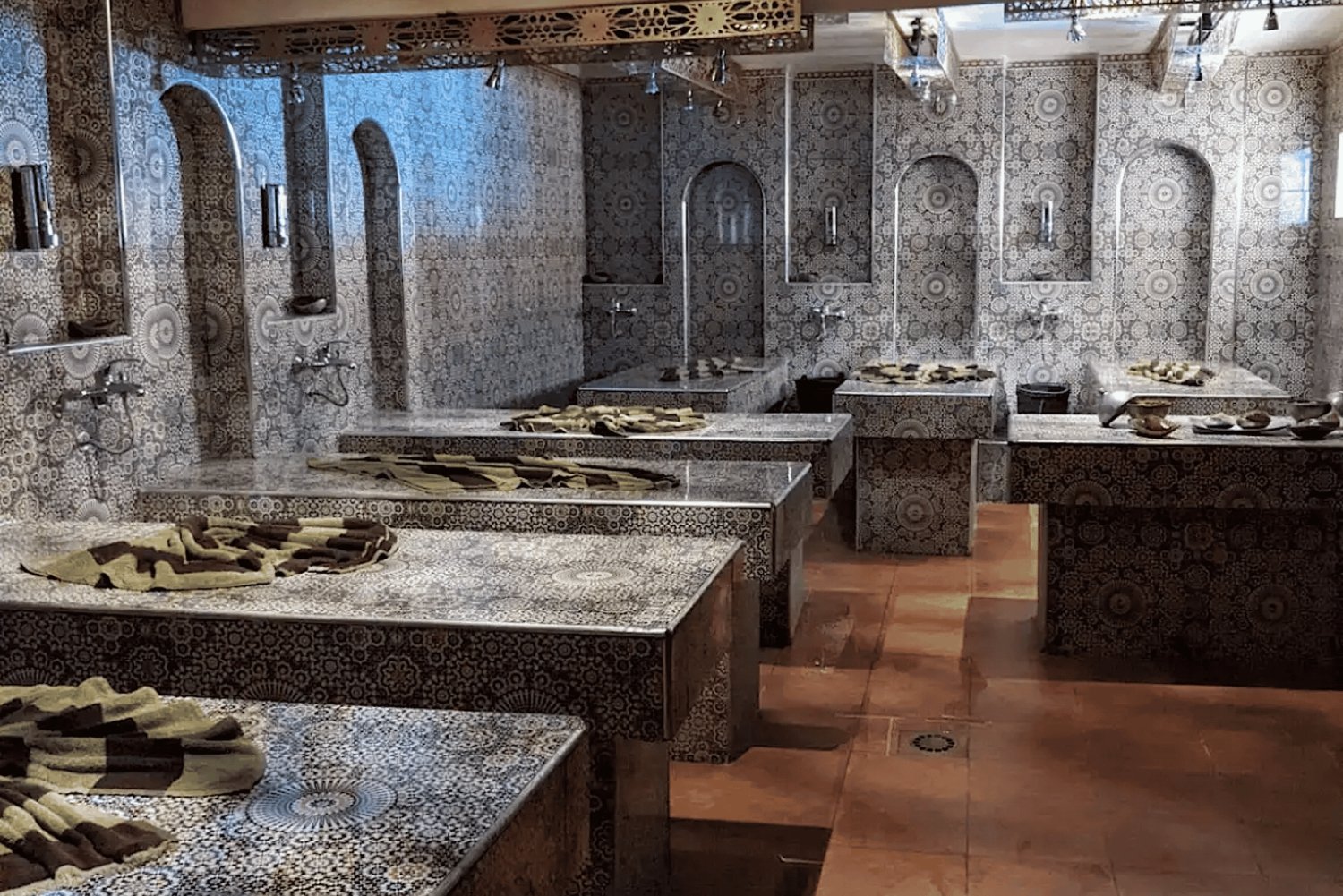 Transporte de ida y vuelta al Hammam Baño de vapor calentito Exfoliación de cuerpo completo con jabón negro natural y guante kessa Masaje de cuerpo completo con aceite de argán o aceites esenciales Tratamiento facial nutritivo opcional Relájate en la zona de descanso Té de menta marroquí tradicionalImportant Information