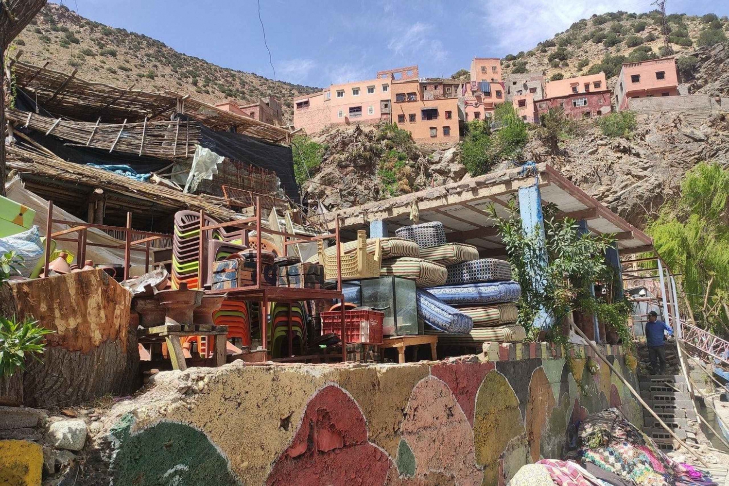 - Duración: 7-8 horas. Una aventura de un día entero con tiempo para explorar y disfrutar. Recibirás los detalles de la recogida (hora y lugar) el día anterior antes de las 17:00 por WhatsApp y correo electrónico. Ten en cuenta que a las 17:00 recibirás la información de recogida, no la hora de recogida. Tour compartido en grupo para una experiencia agradable y social. Recogida en hoteles céntricos o puntos de encuentro cercanos en Marrakech; la hora exacta de recogida se envía el día anterior. Lleva calzado cómodo para caminar; para la ruta de senderismo, se recomienda calzado de agua o zapatillas resistentes, ya que el sendero puede ser rocoso, irregular y, a veces, implica meterse en el agua. La ruta de senderismo es de dificultad moderada, con subidas, rocas resbaladizas y caminos estrechos; puede ser difícil para personas mayores o con movilidad reducida. La protección solar es esencial (sombrero, crema solar), ya que las temperaturas pueden alcanzar los 39 °C en verano. El tour se realiza con cualquier tiempo, así que vístete cómodamente. Lleva efectivo para recuerdos o productos locales (no suelen aceptar tarjetas de crédito). Si tienes alguna necesidad dietética o alergia, avisa a tu guía con antelación.