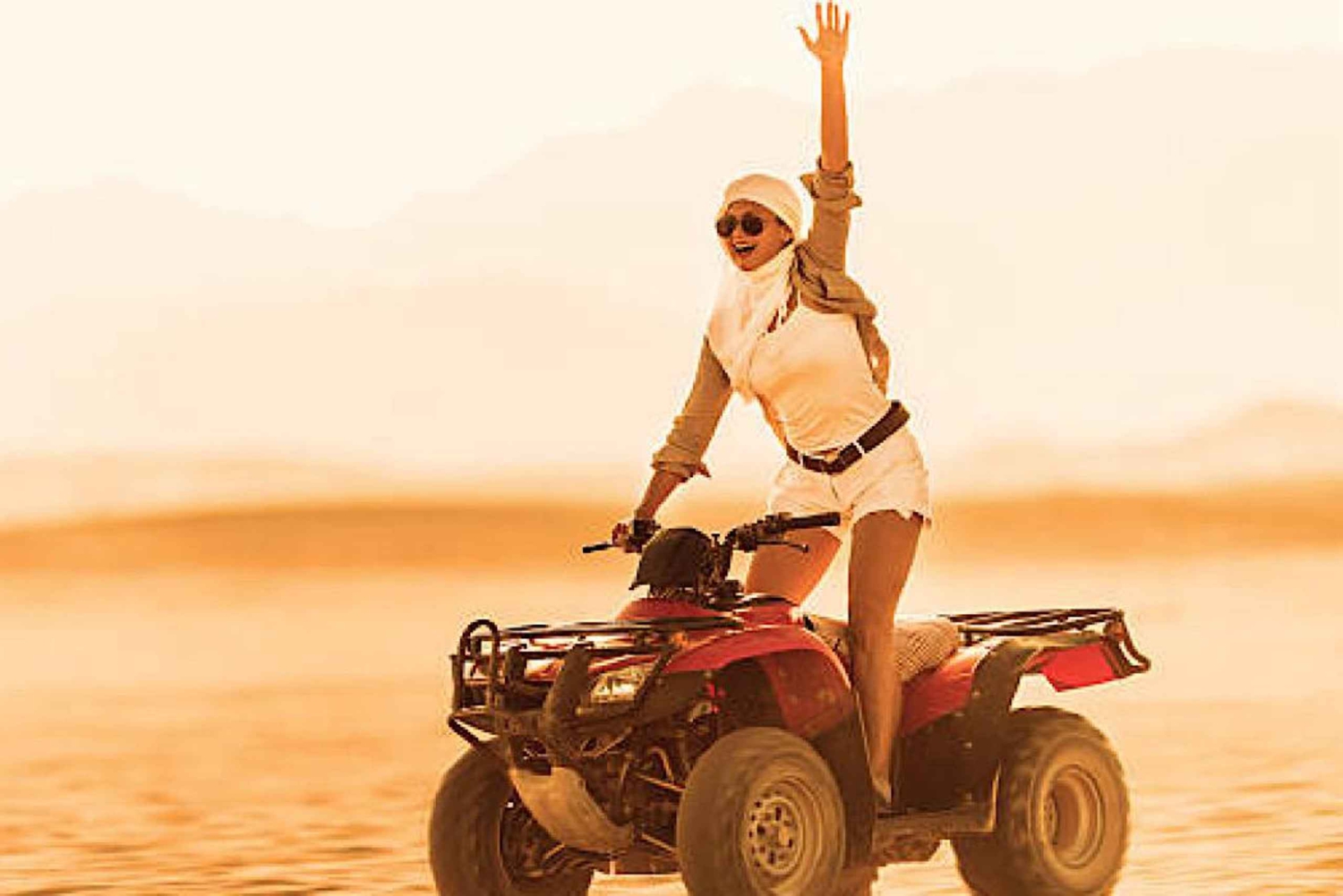 - Monta en quad durante media hora y disfruta de un paseo en camello al atardecer por el desierto.