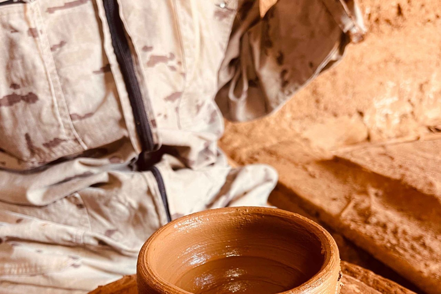 Descubre las maravillas de la alfarería y sumérgete en el corazón de las montañas del Atlas con los bereberes. Lejos del ajetreo y el bullicio de Marrakech, déjate transportar desde tu alojamiento a estas majestuosas cumbres. Programa del día: Transporte desde tu hotel a las montañas del Atlas (~1 hora) Experiencia de alfarería en un taller familiar, acompañada de un desayuno tradicional (~2-3 horas) Paseo con fantásticas vistas del pueblo de Amizmiz (~2 horas); si lo prefieres, también hay disponible un paseo en tuk-tuk. Almuerzo tradicional junto a la piscina en una auténtica villa. Transporte de vuelta a tu hotel. Entre tus manos y la arcilla se crea una conexión mágica que da forma a obras de arte con herramientas sencillas. Tocar la arcilla libera la mente, relaja el cuerpo y facilita la respiración. En este torrente de creatividad, la satisfacción es inmediata y duradera, y eleva el estado de ánimo. La alfarería fomenta la confianza en uno mismo y la comunicación dentro de pequeños grupos de taller, donde convergen las ideas y la creatividad. Acompáñanos en una aventura única y enriquecedora donde se unen el arte, la naturaleza y la cultura. Te aseguro que te encantará.Includes