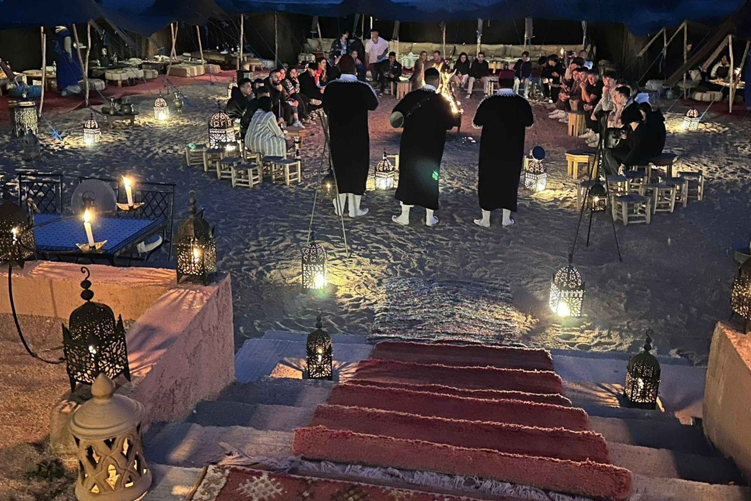 8 ReviewsNoche mágica en el desierto de Agafay. A 40 minutos en coche. Comienza con un paseo en camello, cena al atardecer y espectáculo.