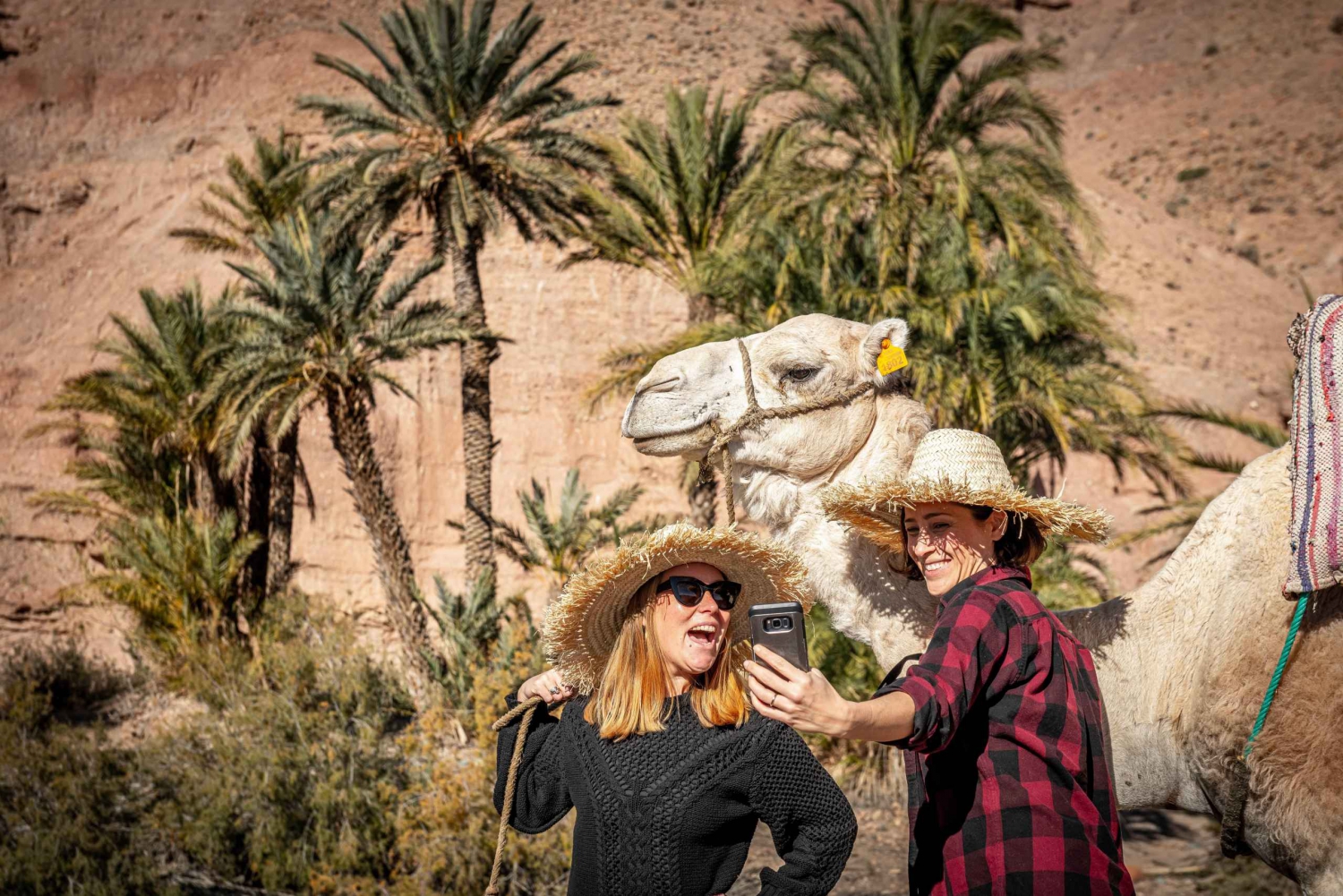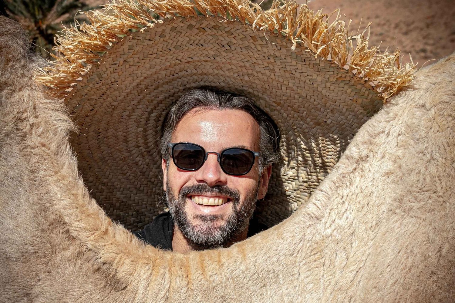 Recogida y traslado al hotel / Riad Un camello por persona (a partir de 10 años) Una cena tradicional de 3 platos (opción vegetariana, vegana o sin gluten disponible bajo petición) Un cheich para protegerte del sol... y para chulear tus fotos Té de bienvenida Guía en camelloImportant Information
