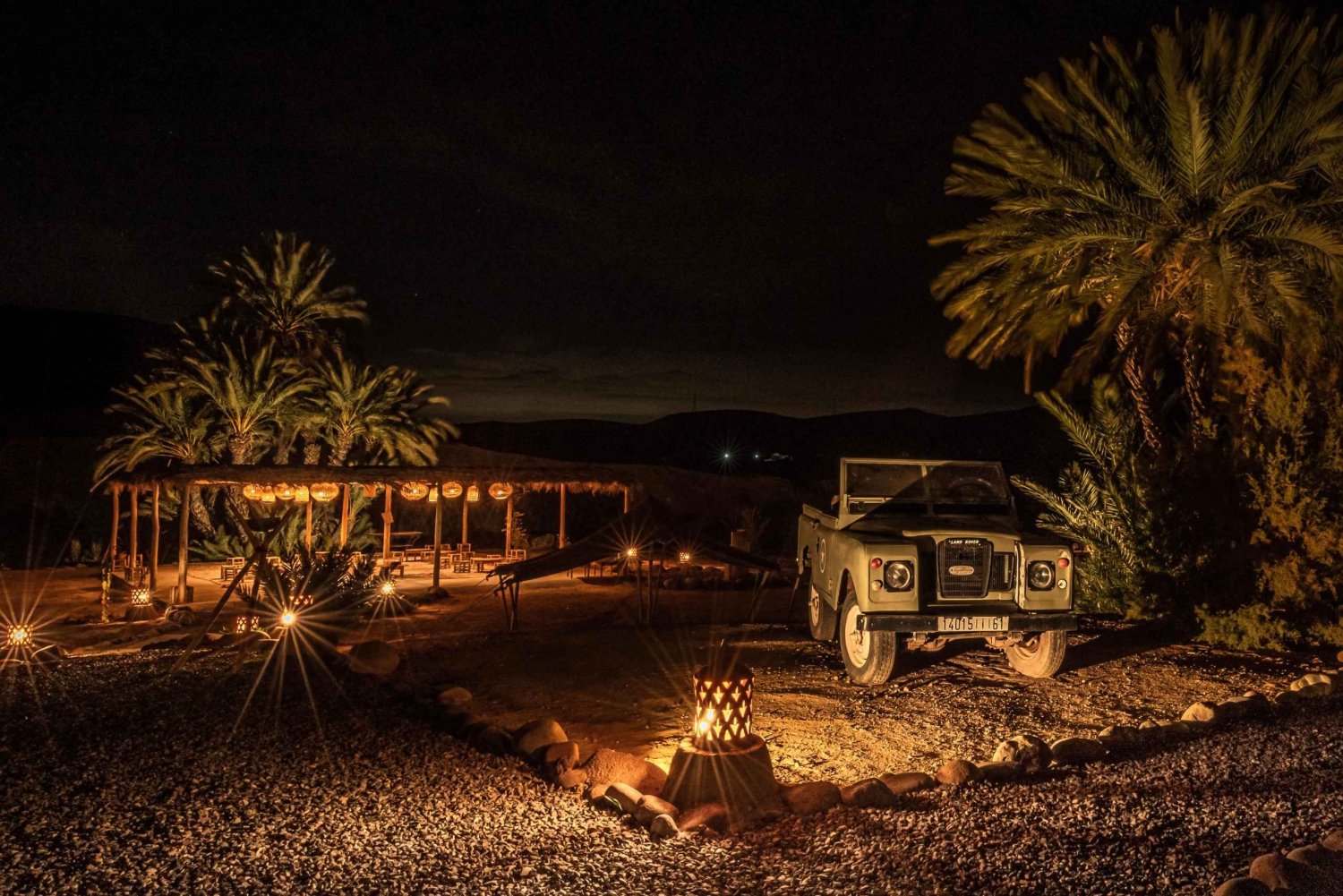 Embárcate en un viaje extraordinario con un paseo en camello por el oasis de las afueras del desierto de Agafay. Experimenta una caminata de hora y media entre palmeras, lechos de ríos secos y un pueblo encantador, guiado por nuestro atento equipo y acompañado por animales bien tratados. Cuando el sol se ponga sobre las áridas colinas de Agafay, serás testigo de un impresionante espectáculo de colores, una experiencia mágica al atardecer. Tras tu aventura en camello, deléitate con una deliciosa cena marroquí servida en un entorno que mezcla la tradición con un ambiente único. Al abrigo de una tienda beduina tradicional, disfruta de los ricos sabores de Marruecos con platos como el sabroso tajine, vibrantes ensaladas locales y delicados pasteles. Deja que el apacible ambiente del oasis del desierto enriquezca tu experiencia gastronómica, asegurándote una velada llena de relajación y disfrute. Este paquete no sólo te ofrece una escapada de las bulliciosas calles de Marrakech, sino también la oportunidad de volver a conectar con la naturaleza y la cultura marroquí. Sumérgete en la belleza del oasis, donde cada detalle -desde el bienestar de nuestros animales hasta las delicias culinarias servidas- está diseñado para crear una actividad serena y memorable. Tanto si buscas aventura, inmersión cultural o simplemente una tranquila velada bajo las estrellas, nuestra experiencia de paseo en camello y cena en el desierto promete un viaje inolvidable. Acompáñanos en una velada de tranquilidad e indulgencia, en la que el camino entre palmeras y colinas ondulantes conduce al majestuoso desierto de Agafay, culminando con un auténtico festín marroquí. Esto no es sólo una comida; es una celebración de la naturaleza, la tradición y la hospitalidad en uno de los paisajes más cautivadores de Marruecos.Includes
