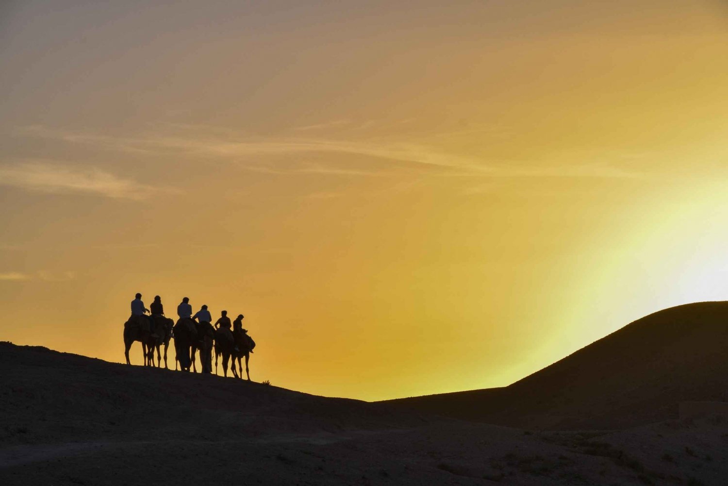 - Experimenta un paseo en camello al atardecer por las ondulantes colinas del desierto de Agafay.