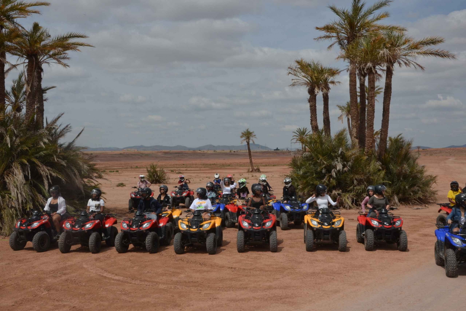 Tras ser recogido en tu hotel o punto de encuentro acordado por tu conductor, Una vez allí, tu experimentado guía te dará unos minutos de instrucciones sobre el funcionamiento y la seguridad del quad. A continuación, ponte el casco y las gafas y sal a explorar el desierto y los oasis de Marrakech. Durante el recorrido, explorarás los paisajes desérticos y los palmerales de la región de Marrakech en quad y disfrutarás de unas vistas impresionantes. Las rutas son adecuadas para todos los niveles, desde principiantes hasta pilotos experimentados. Harás dos paradas cortas por el camino. Durante la primera parada, disfrutarás de té a la menta y pan de miel en un entorno tradicional para recargar las pilas mientras descubres la cultura marroquí. Más tarde, te detendrás en los palmerales para hacer fotos inolvidables durante la segunda parada, y luego disfrutarás de un paseo en camello por los paisajes desérticos y los palmerales de Marrakech. Al final del recorrido, tu conductor te llevará de vuelta a tu hotel o al punto de encuentro original.Includes