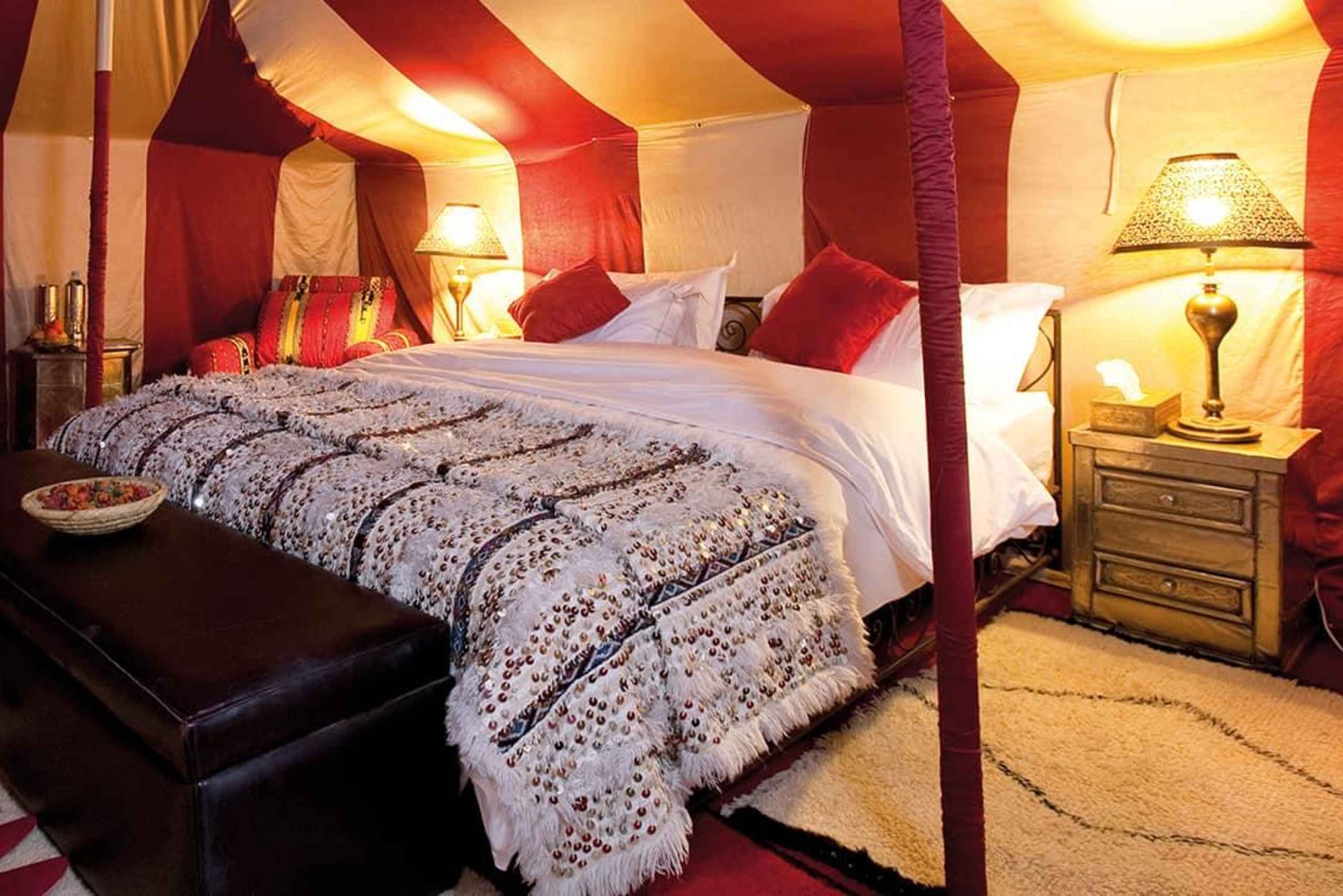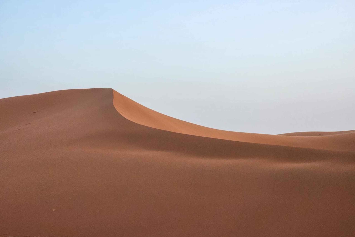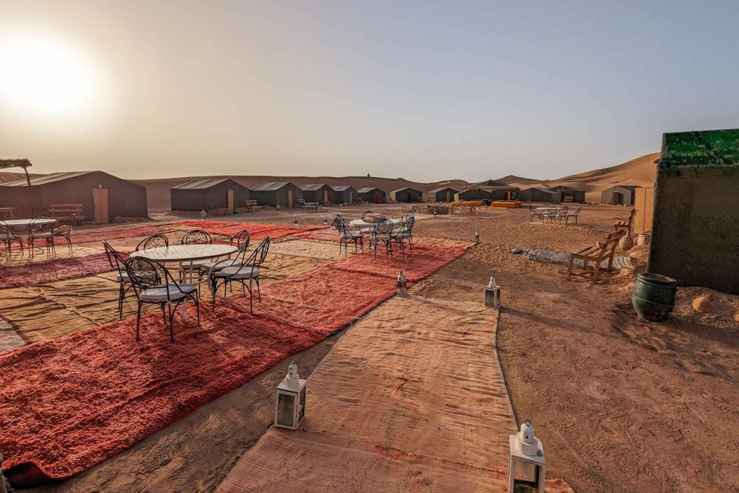 Pickup & Drop Off at your accommodations. Transportation by air-conditioned 4x4 or minibus. Local knowledgeable driver will travel with you. Nightly accommodations (2-3 nights in berber-style desert camp based on your selections). Breakfast and dinner are included at your nightly accommodations. Guides will be included as designated in the itinerary. (not included on shared option) Camel ride to your camp with an experienced camel driver. Sandboarding at your leisure in the camp.Important Information