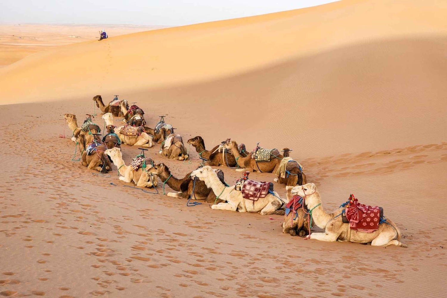 - Camel Ride at sunset in the dunes of Erg Chegaga in the Sahara Desert