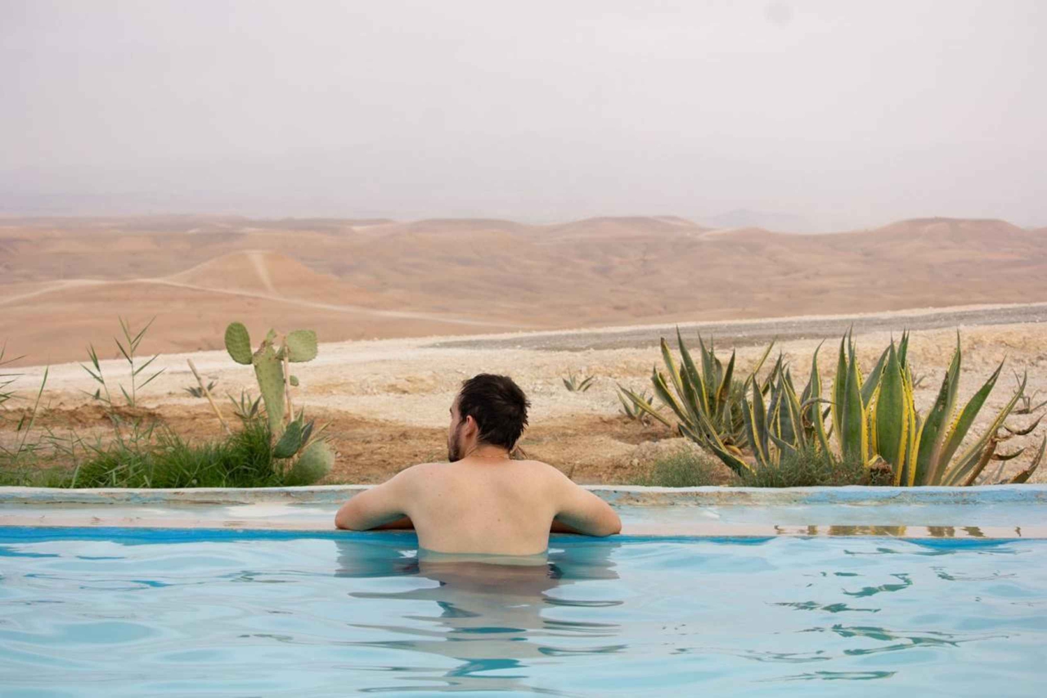 - Relax in a tranquil pool located in the heart of the desert camp.