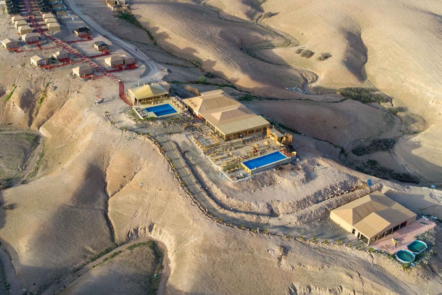 - Enjoy a variety of activities on this adventure to the Agafay Desert from Marrakesh. Ride camels and quad bikes in the desert, take a swim, savor local cuisine, and enjoy cultural performances as part of this unforgettable experience. Begin with pickup from the selected meeting point in Marrakech and head to the Agafay Desert, marveling at the landscapes along the way. Create lasting memories as you ride camels and quad bikes through the desert dunes. Indulge in a moment of relaxation and take a swim in one of the unique pools. As the sun sets, gather around the campfire and listen to a guitarist perform. Then, enter a candlelit hut where a traditional Moroccan meal awaits you. Savor an array of salads, tajines, couscous, and desserts that showcase the rich flavors of Morocco. Soak up the atmosphere with music performed by Gnawa musicians, fire dancers and jugglers, and belly dancers. Return to your accommodation in Marrakech afterward. Option 01 : From Marrakesh: Desert Quad Biking, Camels, Dinner, and Show Includes : Transfers, quad biking, Camel ride, pool access, dinner and diversified show - from 2 pm to 11 pm. Option 02 : DAY PASS AT AGAFAY DESERT : SWIMMING POOL & LUNCH Includes : transfers, pool day & lunch - from 9 am to 4 pm. Please make sure that the option you book suits your expectations. Kids under 8 years old are not allowed.Includes