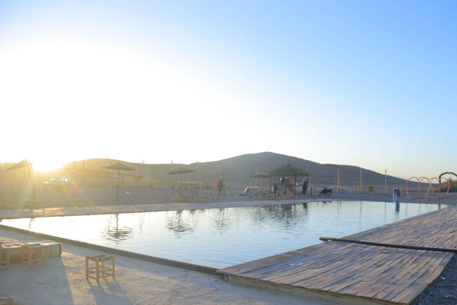 Pickup and drop-off Transportation by AC minibus Guide 55-Min Quad Ride on a double quad (2 person per quad ) 25 Min Camel ride Dinner Water with Dinner Live Moroccan music Fire show Swimming pool (extra)Easy cancellation
