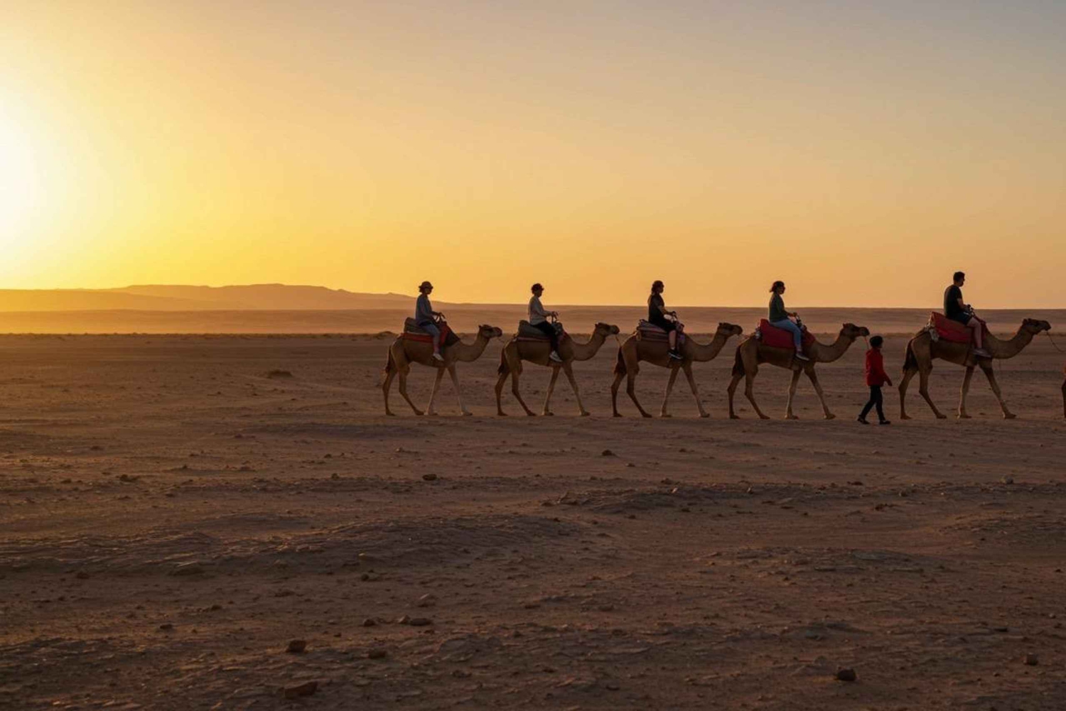 - Enjoy a calm camel trek as the sun sets over golden dunes