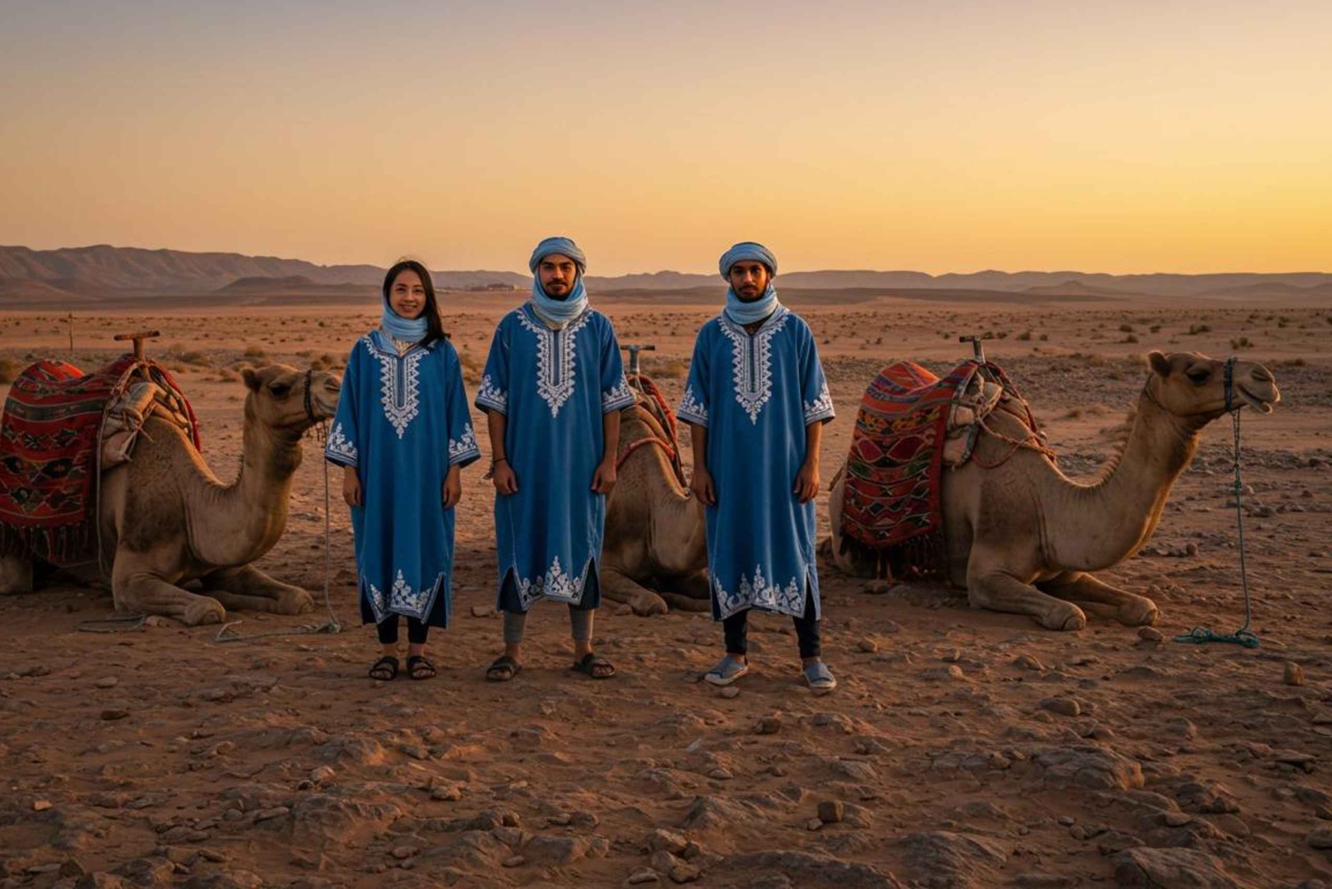 Leave the noise of Marrakech behind and journey into the calm beauty of the Agafay Desert, a land of golden hills, rocky trails, and endless horizons. Your adventure begins with a thrilling quad bike ride across the desert’s moon-like terrain. Feel the wind, the dust, and the freedom as you follow scenic tracks surrounded by breathtaking views of the High Atlas Mountains. After the adrenaline rush, slow down for a peaceful camel ride at sunset, where soft orange light paints the dunes and silence fills the air. Capture timeless photos and enjoy the true desert rhythm. As night falls, step into the warm glow of our Agafay camp, an oasis of comfort and culture. Enjoy a traditional Moroccan dinner served under the stars, accompanied by live Berber music, drumming, and a mesmerizing fire show performance that lights up the desert sky. Whether you seek adventure, culture, or romance, this unforgettable evening in Agafay combines it all: thrill, taste, and tradition, just a short drive from MarrakechIncludes