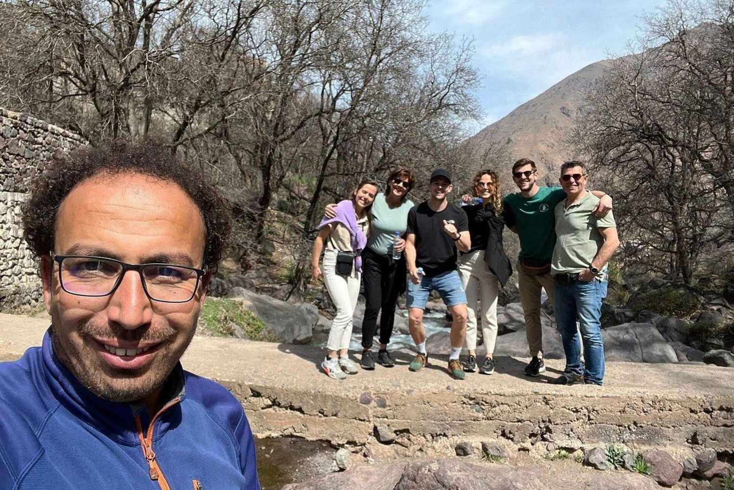 -Meet at 9:00 am at the meeting point of Argana Café, or get picked up from your hotel. - Stop in Azrou to snap photos and visit a women’s argan-oil cooperative. Sip tea, taste fresh argan oil, and see how it’s made. - Continue deeper into the Imlil Valley for a gentle guided walk 1-2 hour through peaceful Berber villages, waterfalls, orchards of walnut & appel trees. Transport is provided for those who can't walk, ensuring everyone enjoys the full experience. - A delicious lunch will be waiting for you in a local home, with stunning rooftop views of the Atlas peaks. - After lunch, we’ll gather for a warm tea-making session, sharing the art and stories behind Morocco’s beloved drink.✨ - You’ll arrive back in Marrakech around 5 :00 p.m., carrying lasting memories of mountain scenery and warm Berber hospitality. - Monday, Tuesday, Friday, Saturday, and Sunday trips we will visit a lively Berber farmers’ market. - Note: This trip no longer includes camel rides to ensure the animals’ well-being and safety.Includes