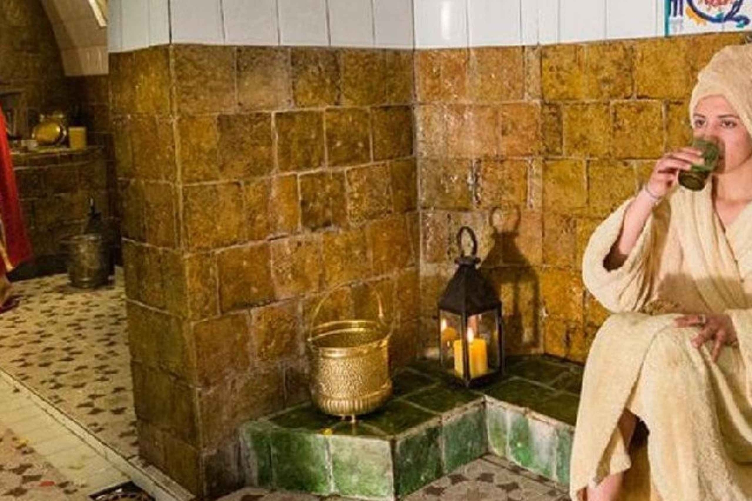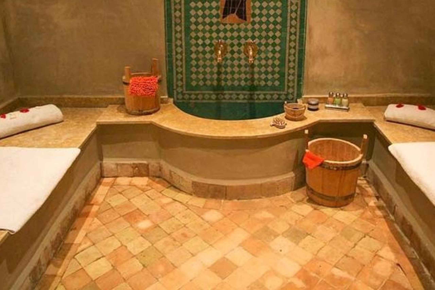 Experience a Romantic Hammam & Relaxing Massage just 5 minutes from the famous Koutoubia Mosque in the heart of Marrakech. Begin or end your session with a Moroccan mint tea, a symbol of hospitality, immersing you immediately in the warm and welcoming atmosphere of Morocco. Step into hot, steam-filled rooms adorned with colorful zellige tiles, where a natural black soap made from olive oil deeply cleanses your skin. A traditional kessa scrub follows, leaving your body refreshed, silky smooth, and radiant. After the hammam, indulge in a rejuvenating massage with aromatic oils such as argan or rose essence. Whether you are seeking stress relief, improved circulation, or simply a romantic escape, the massage offers therapeutic and relaxing benefits tailored to your needs. More than just a spa treatment, this is a romantic and soothing Moroccan experience that will renew your body, relax your mind, and provide a touch of timeless romance.Includes
