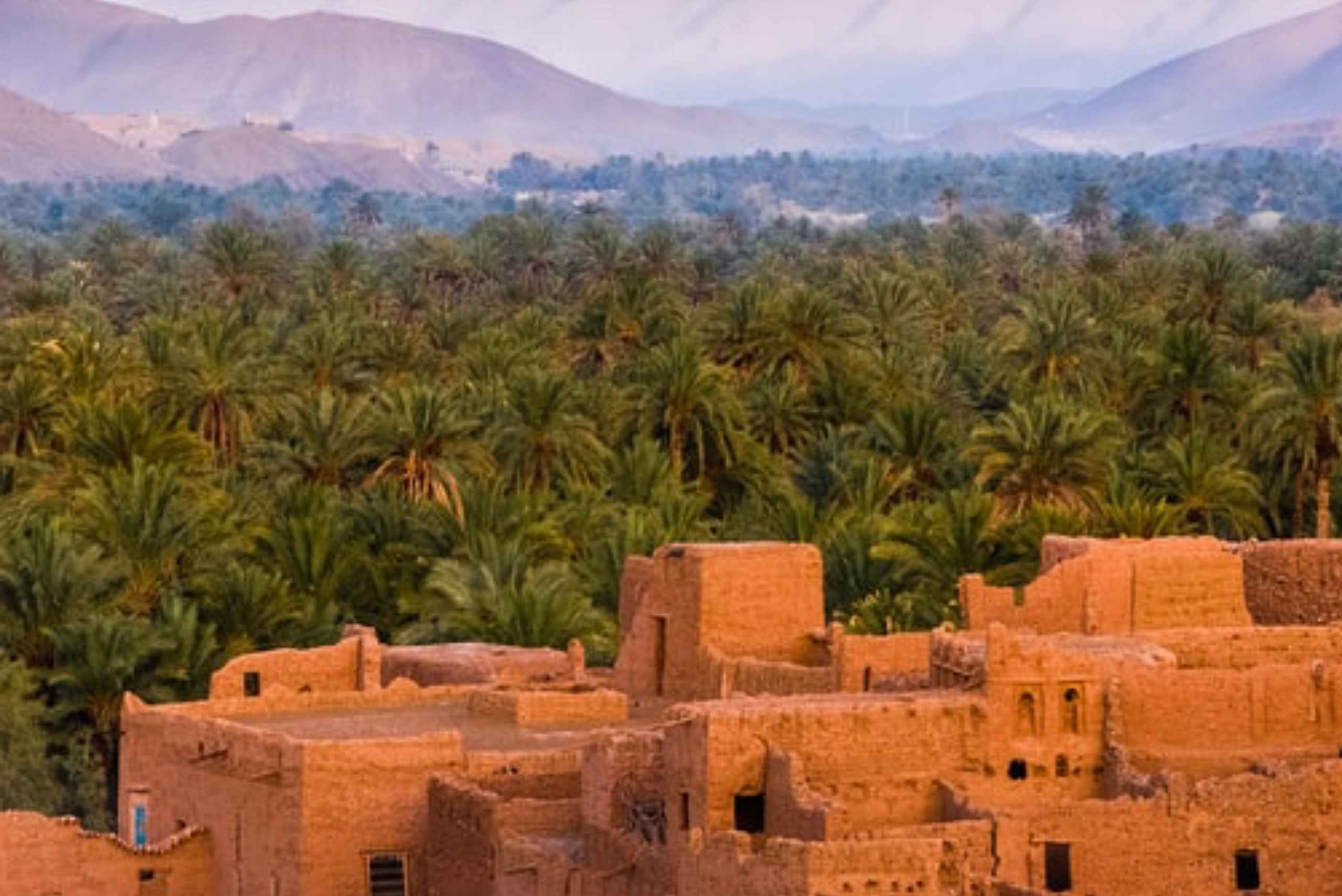 Matka alkaa Marrakechista ja jatkuu Zagoran autiomaahan Tizi n'tichka -solalla, Atlasvuorten sydämessä. Matkan varrella näet berberikylät, jotka ovat piilossa vuorenrinteillä, ja pysähdyt vierailemaan Ait Ben Haddoussa, joka on yksi upeimmista kasbahista (linnoituksista). Aitoja berberikylää on nähty monissa elokuvissa, kuten Lawrence of Arabia, Hidalgo, The Black Stallion Returns, Babel ja Cleopatra. Matka jatkuu Ouarzazaten kautta, jossa sijaitsevat alueen elokuvastudiot. Draa-laakson läpi virtaavan joen varrella näet monia kasbah-linnoituksia ja pitkän palmupuiden oaasin, joka on tärkeä päivämäärien lähde. Agdzin kylän jälkeen saavut pian Zagoraan. Matkan varrella näkyvät massiiviset savirakennukset on jaettu perheiden asunnoiksi kasbah-kylissä, joissa elämä on jatkunut muuttumattomana vuosisatojen ajan. Zagora on viimeinen kaupunki ennen palmuoaseita, joissa tie häviää hiekkaan ja kiviin. Yksityiskohtainen matkasuunnitelma Päivä 1: Marrakech – Ait Ben Haddou – Zagora • Nouto Marrakechin majapaikastasi klo 07:30 • Ajo High Atlas -vuorten läpi • Vierailu Ait Ben Haddoussa • Siirto Zagoraan Agdzin ja Draan laaksojen berberikylien läpi • Kameliratsastus leirintäalueelle (1–2 tuntia) • Illallinen autiomaassa, berberimusiikkiesitys. 2. päivä: Zagora – Agdz – Ouarzazate – Marrakech • Auringonnousun katselu leirintäalueelta • Kamelimatka takaisin lähtöpisteeseen • Kuljetus Marrakechiin, pysähdys Ouarzazatessa • Vierailu Ouarzazatessa Kasbah Taourirtin katsominen • Paluukuljetus Marrakechin majapaikkaasi noin klo 18.00Includes
