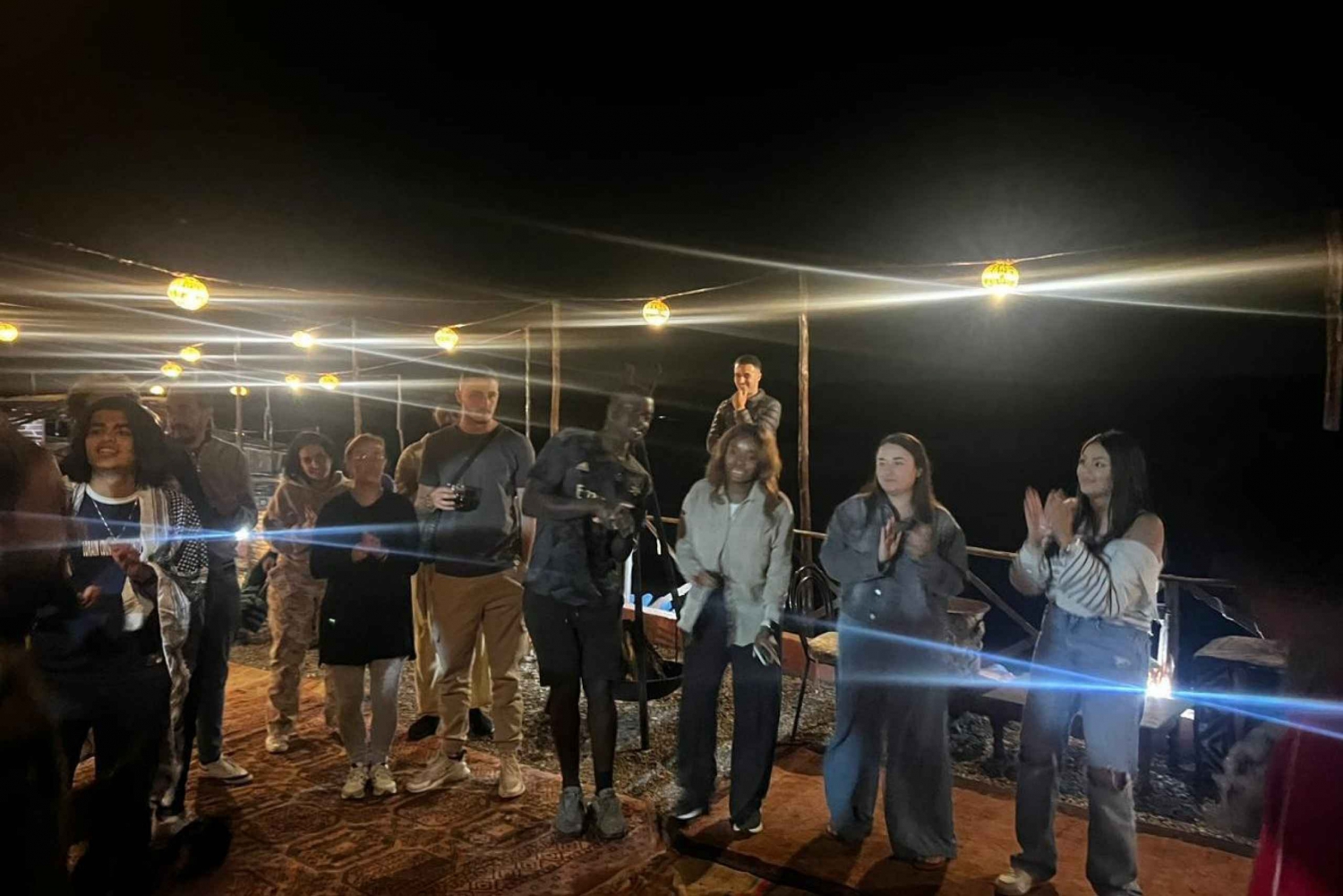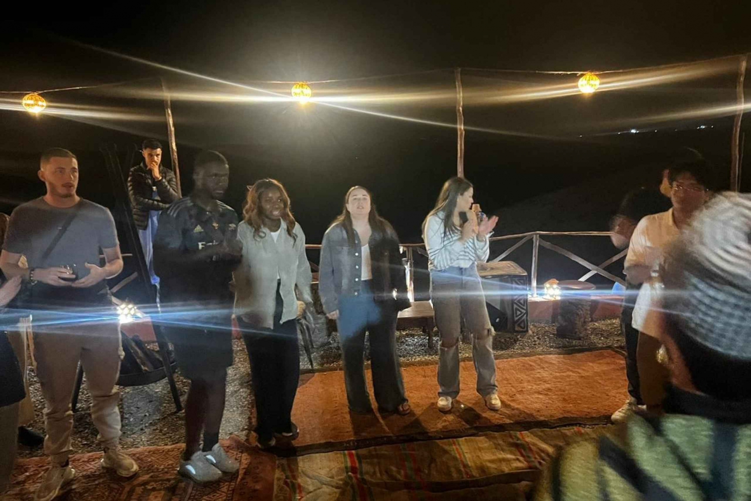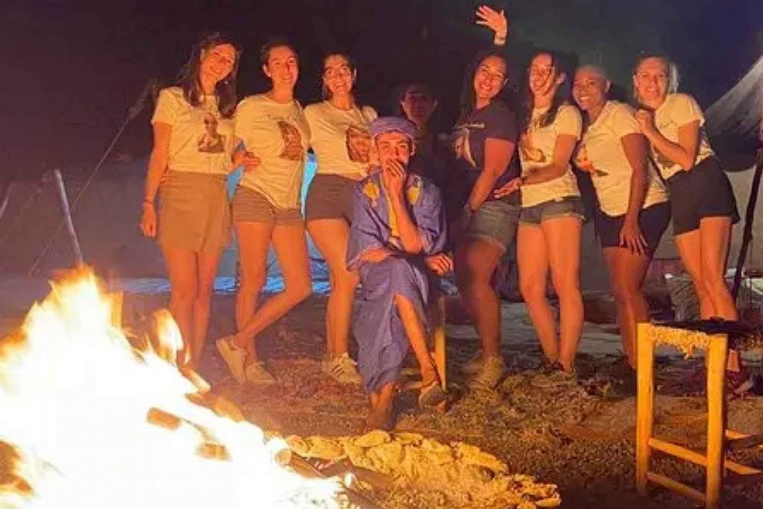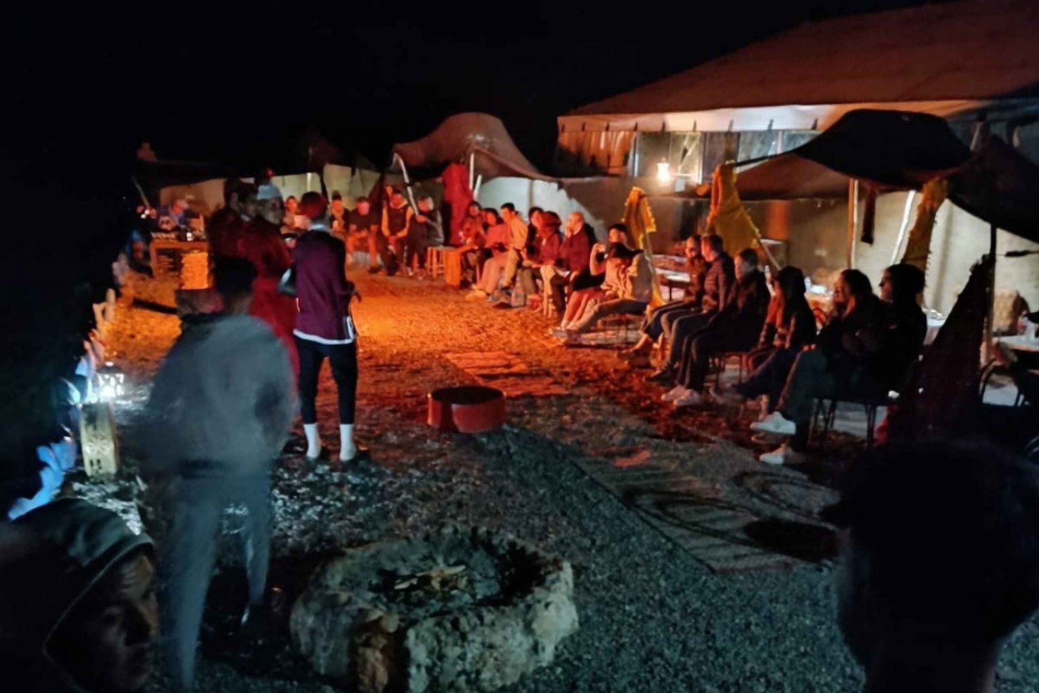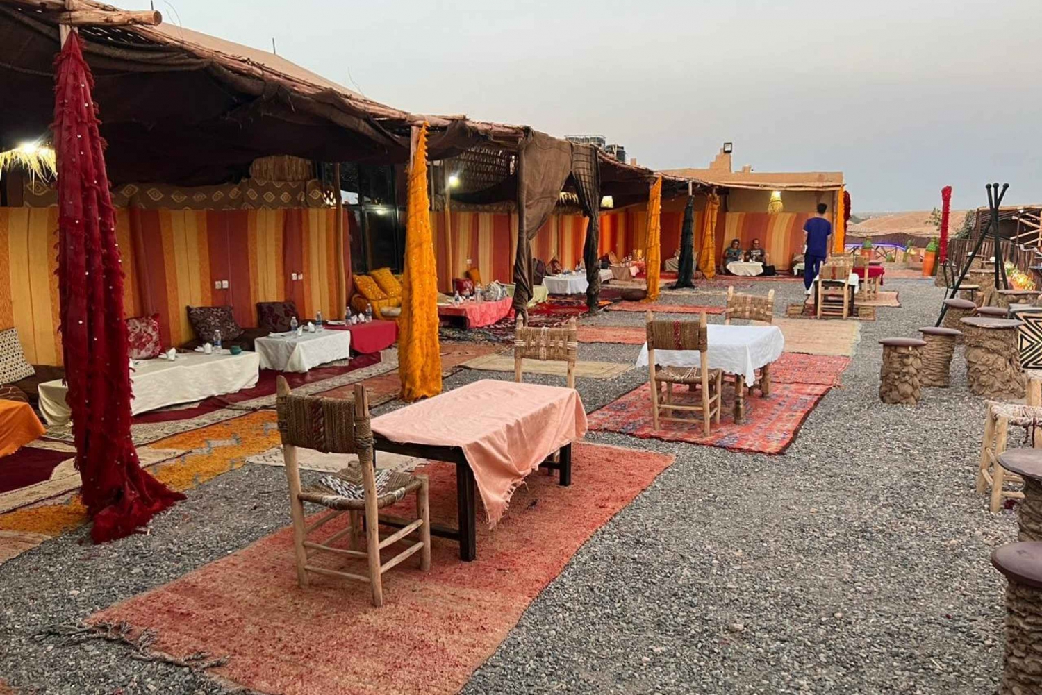 Hotellin nouto ja kyyditys . Illallinen perinteisessä teltassa aavikolla . Juomat, vesi, tee ja sooda . Paikallinen kansanmusiikkiryhmä . Marokkolaista menth-teetä nuotion ympärillä .Easy cancellation