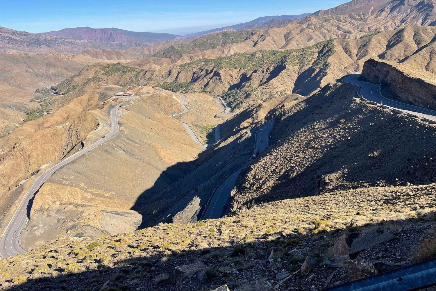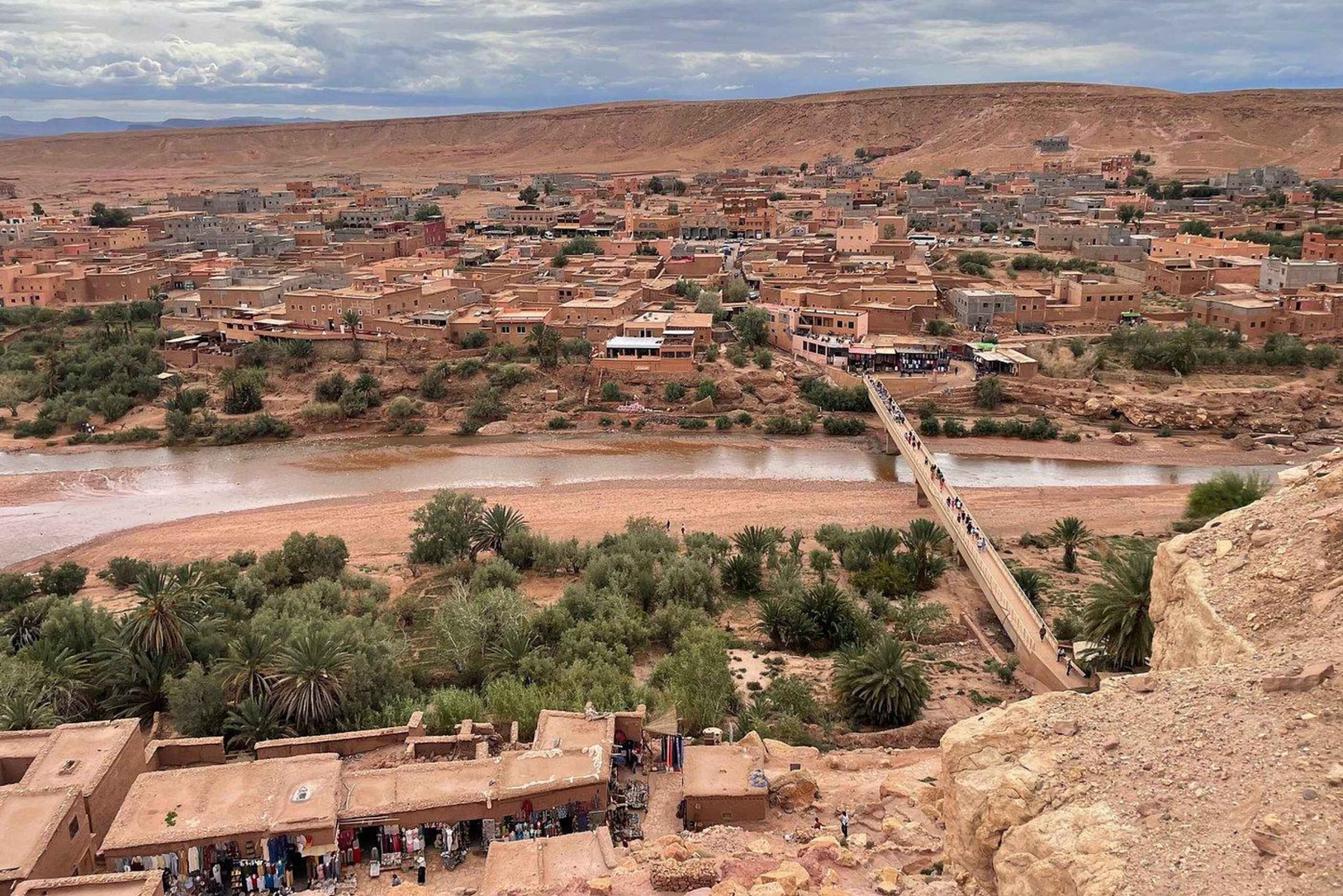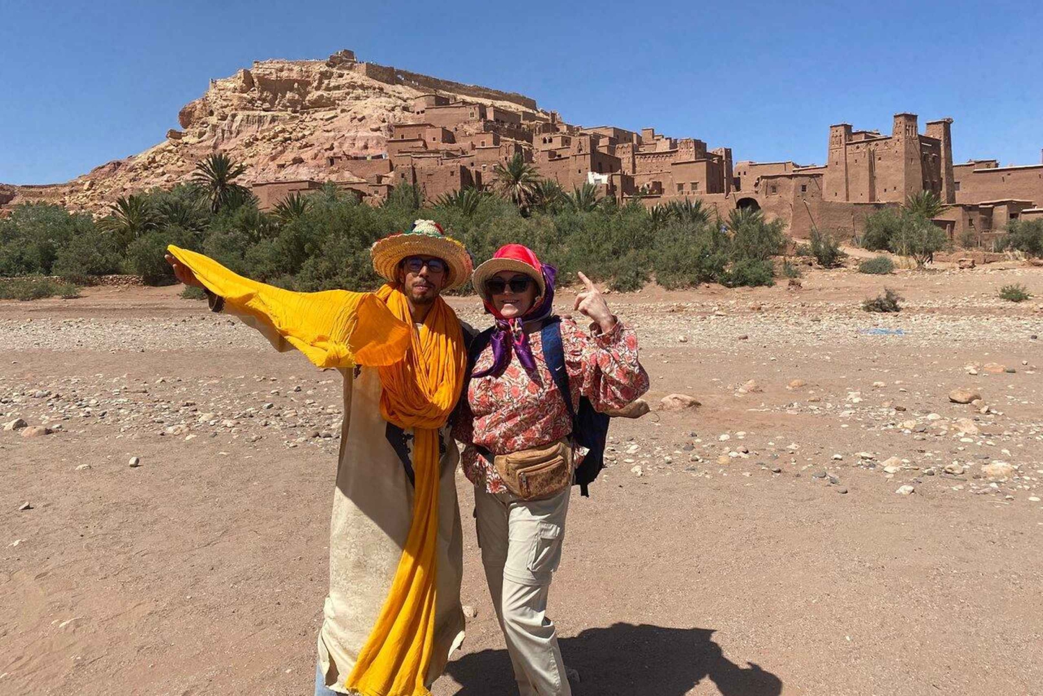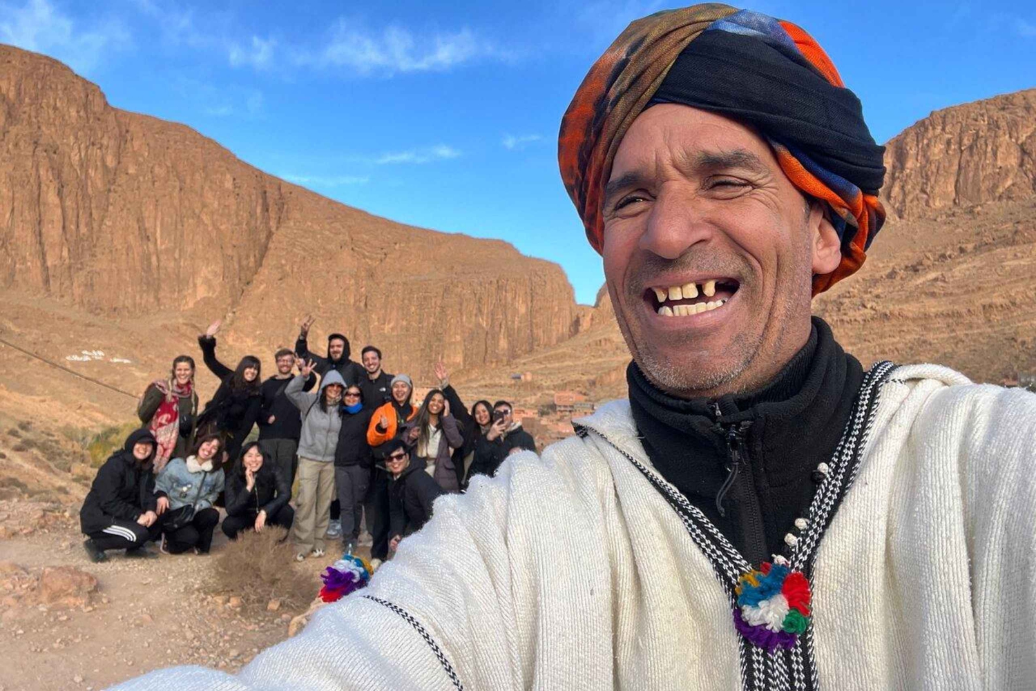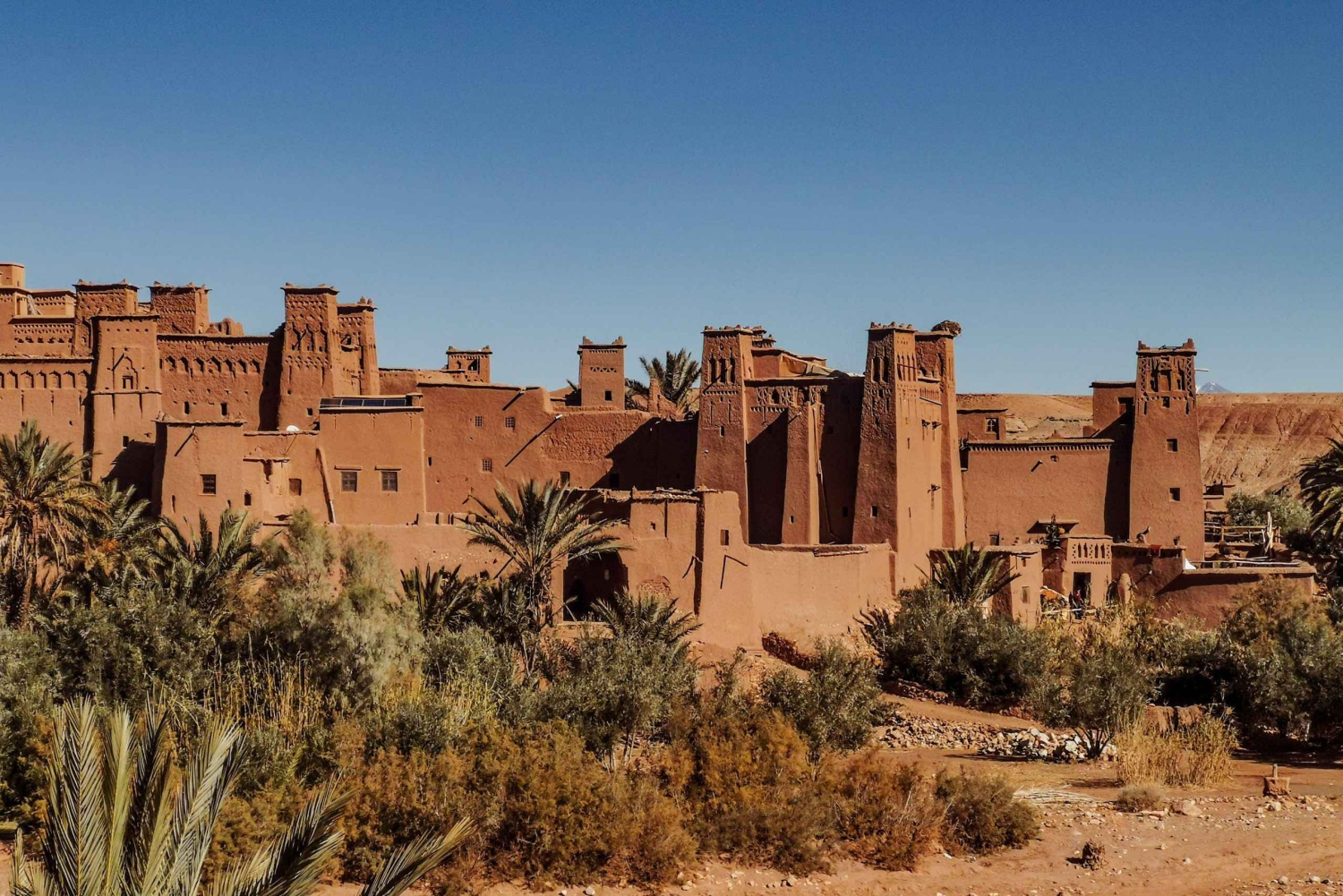 -JOUR 1 : MARRAKECH - MONTAGNES DE L'ATLAS - KASBAH AIT BEN HADDOU - BOUMALNE VALLÉE DU DADES → 6 HEURES DE ROUTE Faites l'expérience d'un voyage passionnant à travers l'est du Maroc dans un minibus confortable et climatisé. À partir de 7 h 15 de votre hôtel de Marrakech, nous traverserons les montagnes de l'Atlas pour atteindre la Kasbah historique d'Aït Ben Haddou. Ici, vous explorerez un monde rappelant les anciens marchés et la vie dans le désert, suivi d'un déjeuner dans la Kasbah. L'après-midi, nous visiterons Ouarzazate, connue comme 'la porte du désert', où des films emblématiques comme La momie et Lawrence d'Arabie ont été tournés. Après un arrêt au café, nous nous dirigerons vers la vallée du Dadès, où vous vous détendrez avec un délicieux dîner marocain et une nuitée. -JOUR 2 : BOUMALNE VALLÉE DU DADES -TINGHIR - GORGES DU TODRA - MERZOUGA → 4 HEURES DE ROUTE Après un petit déjeuner copieux, nous nous dirigeons vers les superbes gorges de Todra, un spectacle à couper le souffle. Après le déjeuner, nous continuons vers les dunes de Merzouga, où une balade à dos de chameau nous mènera à travers les dunes de l'Erg Chebbi jusqu'à un campement berbère dans le désert. Dîner, musique autour du feu de camp sous un ciel étoilé et petit-déjeuner le lendemain matin avant le retour à Marrakech. -JOUR 3 : MERZOUGA - OUARZAZATE- MONTAGNES DE L'ATLAS- MARRAKECH → 9 HEURES DE ROUTE Un réveil matinal commence la journée avec un petit déjeuner avant notre balade à dos de chameau jusqu'au minibus. Nous traversons ensuite la vallée pittoresque du Drâa, en nous arrêtant à Rissani pour admirer l'architecture marocaine dans ses palais, ses portes et ses temples, parfaits pour les photos. Notre dernière étape nous fait passer par Nqob et Tamnougalt avant d'atteindre Ouarzazate, où vous pourrez déjeuner dans un restaurant local. Nous traverserons ensuite les montagnes de l'Atlas et arriverons à Marrakech vers 20 heures pour conclure notre aventure. Les repas et l'hébergement inclus dans ce circuit sont les suivants : → repas : 2 petits déjeuners, 2 dîners → Hébergement : 1 nuit dans un hôtel à Dadès et 1 nuit dans un campement dans les dunes.Includes