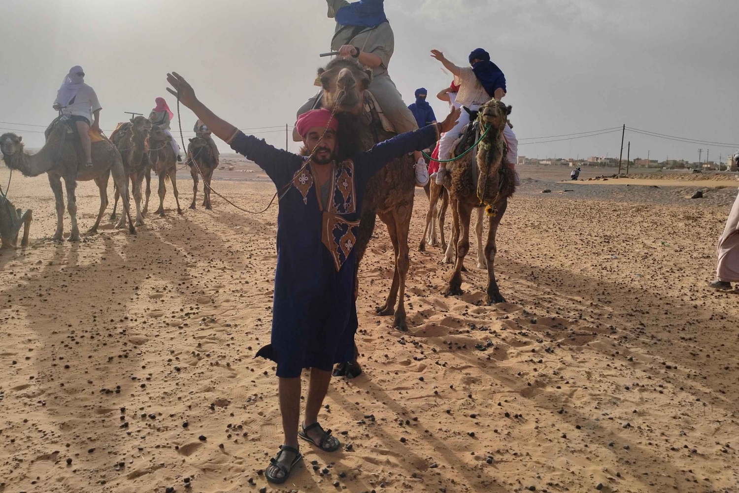 Jour 1 : Marrakech - Ait Ben Haddou - Agdez - Zagora Nous commençons notre excursion de 2 jours dans le désert de Zagora, avec un pick-up dans un véhicule climatisé et confortable à 8 heures du matin à partir de votre hébergement à Marrakech. Nous traversons les montagnes du Haut Atlas - le col de Tizi-n-Tichka - en parcourant des kilomètres et des kilomètres en appréciant la présence fascinante de superbes villages berbères dispersés pour atteindre le site du patrimoine mondial d'Ait Benhaddou, le ksar le plus célèbre du Maroc (ksar = ancien village de kasbahs), un village fortifié datant du 18ème siècle et marqué comme patrimoine mondial par l'unesco depuis 1987, ce site magnifique a été une terre fertile attrayante pour de nombreux réalisateurs pour tourner de nombreux films tels que : Gladiator, Lawrence d'Arabie, Alexandre, Le joyau du Nil... Après avoir exploré la Kasbah, vous dégusterez un déjeuner traditionnel dans un restaurant local. Continuation vers la vallée du Draa et son immense palmeraie via Ouarzazate en traversant le village d'Agdez et les kasbahs. Arrivée à la ville saharienne de Zagora où les vestiges d'une forteresse almoravide sont encore visibles. Après une pause thé, balade à dos de chameau pour une nouvelle aventure, traversant la palmeraie de Draa pour atteindre les sables des dunes de Tinfo pour passer la nuit sous les tentes berbères. Jour 2 : Zagora - Vallée du Draa - Ouarzazate - Marrakech Après un petit déjeuner typique dans le camp du désert de Zagora, vous êtes accueillis par le spectacle attrayant de la lumière du soleil se levant sur les petites dunes du désert de Zagora. La dernière partie est le balade dos à chameau de retour à votre hôtel pour rencontrer votre chauffeur pour commencer un nouveau voyage d'exploration vers Marrakech. Vous aurez également du temps libre à Ouarzazate pour déjeuner dans l'un des restaurants locaux et visiter la célèbre Kasbah de Taourirt et les studios de cinéma. Dans l'après-midi, nous vous ramenons à Marrakech en passant par les montagnes de l'Atlas, ce qui met fin à votre excursion de 2 jours dans le désert de Zagora. Retour à votre hébergement vers 18 heures.Includes