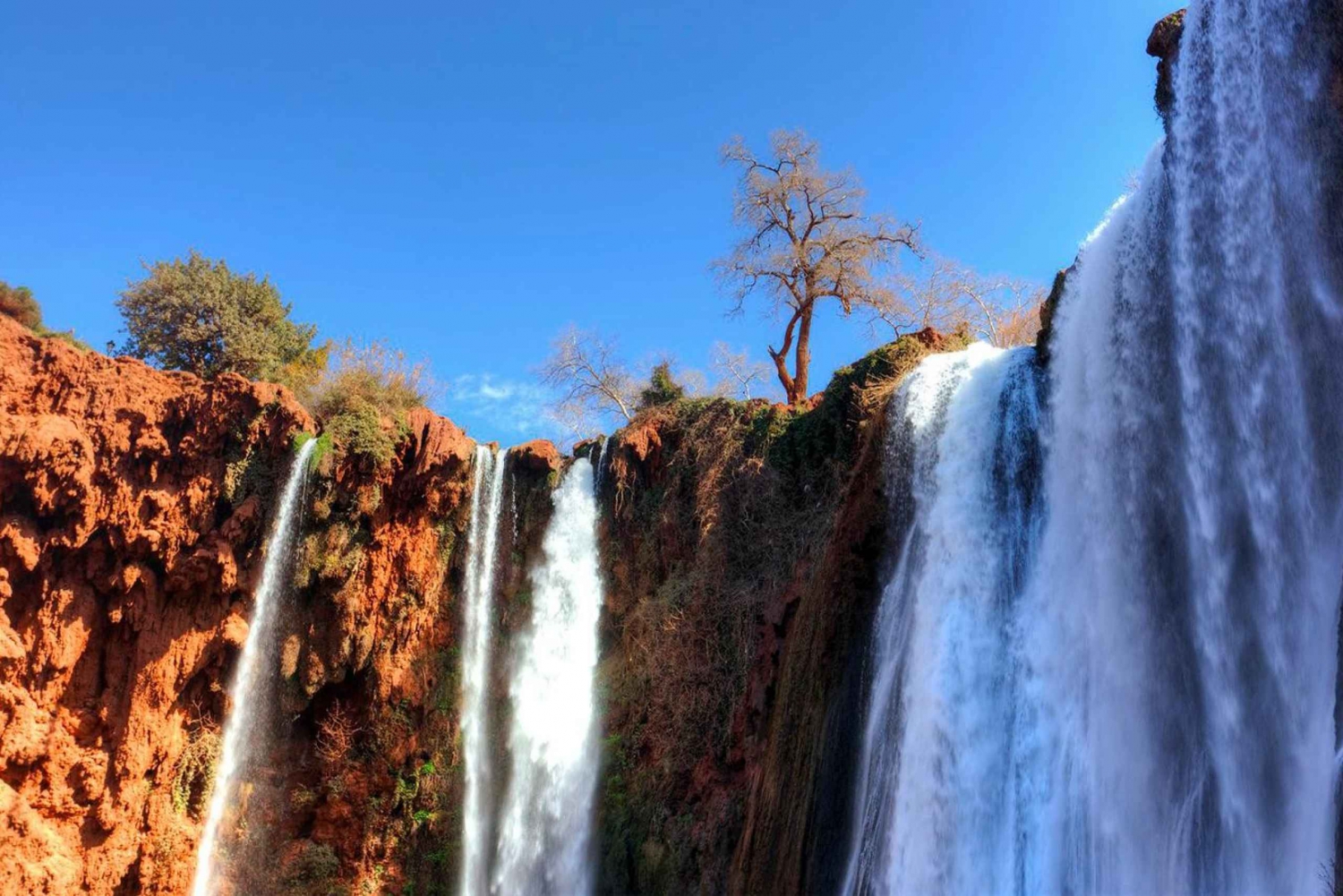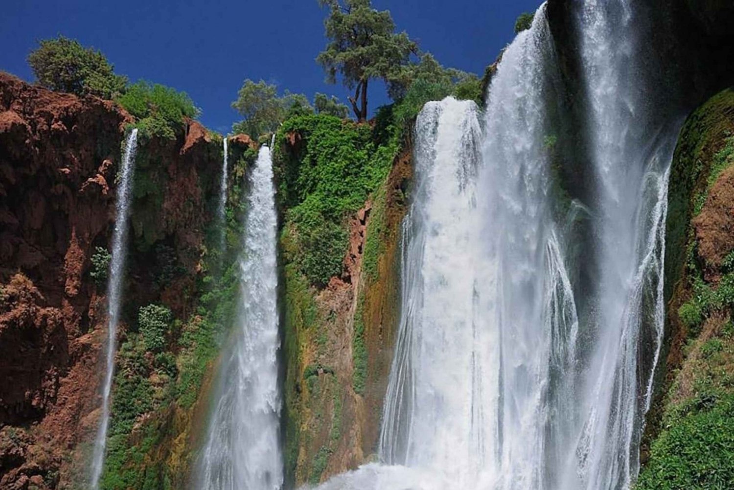 - La marche entre le haut et le bas des cascades est raide et inégale. Veuillez porter des chaussures adaptées. Le déjeuner n'est pas inclus dans le prix. Le guide vous suggérera notre restaurant spécialement sélectionné, où vous pourrez choisir de rejoindre le groupe pour déjeuner en admirant les chutes d'eau. Le déjeuner sera tardif (à partir de 14h30), prenez donc un petit déjeuner copieux ou emportez des en-cas. La durée du voyage est de 3 heures dans chaque sens, dont 4 heures passées à Ouzoud. Des singes sauvages vivent dans les arbres autour des cascades. Ne les touchez pas et ne les nourrissez pas, mais vous pouvez les observer et prendre des photos.