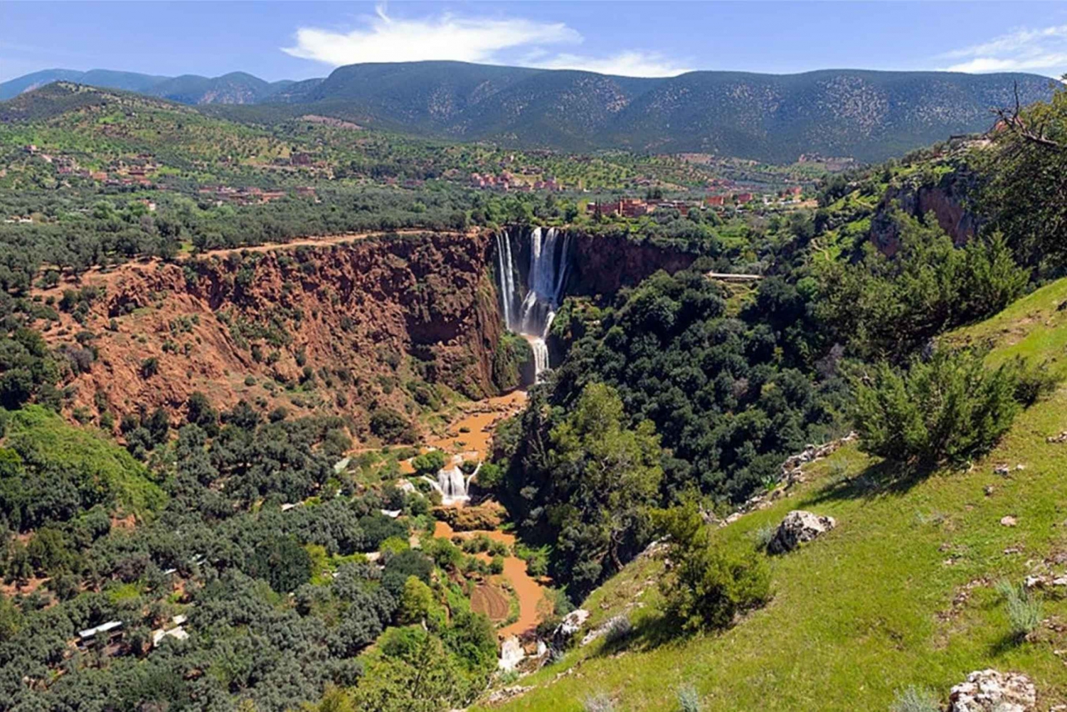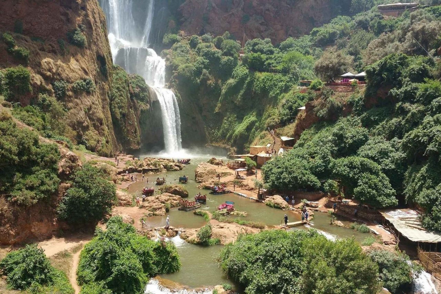 Échappez à l'agitation de Marrakech et embarquez pour une excursion inoubliable à la découverte des superbes cascades d'Ouzoud. Votre aventure commence par un trajet panoramique à travers la magnifique campagne marocaine. En traversant de charmants villages berbères, vous aurez un aperçu de la vie traditionnelle, en passant par des champs en terrasse et des paysages pittoresques. Ce voyage prépare le terrain pour les merveilles naturelles qui vous attendent. En arrivant aux cascades d'Ouzoud, vous serez accueillis par le spectacle impressionnant de l'eau qui tombe en cascade de plus de 110 mètres dans le canyon en contrebas. Commencez votre exploration par une randonnée guidée sur des sentiers bien entretenus qui vous mèneront à travers des oliveraies luxuriantes. Au fur et à mesure que vous descendez vers la base des chutes, le grondement de l'eau s'amplifie, augmentant l'excitation. Gardez un œil sur les macaques de Barbarie qui habitent la région et ajoutent une touche de magie à votre randonnée. Vous aurez de nombreuses occasions de prendre des photos depuis différents points d'observation, chacun offrant une perspective unique sur les chutes. Lorsque vous atteindrez le bas des chutes, un bateau traditionnel en bois vous emmènera près des cascades tonitruantes, vous permettant de sentir la brume rafraîchissante sur votre visage. Ensuite, vous pourrez déjeuner tranquillement dans un restaurant local doté d'une terrasse surplombant les chutes, où vous pourrez savourer des plats marocains authentiques tout en profitant de la vue à couper le souffle. Avant de retourner à Marrakech, prenez le temps d'explorer les environs, de faire des achats d'artisanat local ou simplement de vous détendre et d'absorber l'atmosphère sereine de ce paradis naturel. Cette excursion d'une journée aux cascades d'Ouzoud combine aventure, nature et immersion culturelle, vous laissant des souvenirs inoubliables des paysages enchanteurs du Maroc.Includes