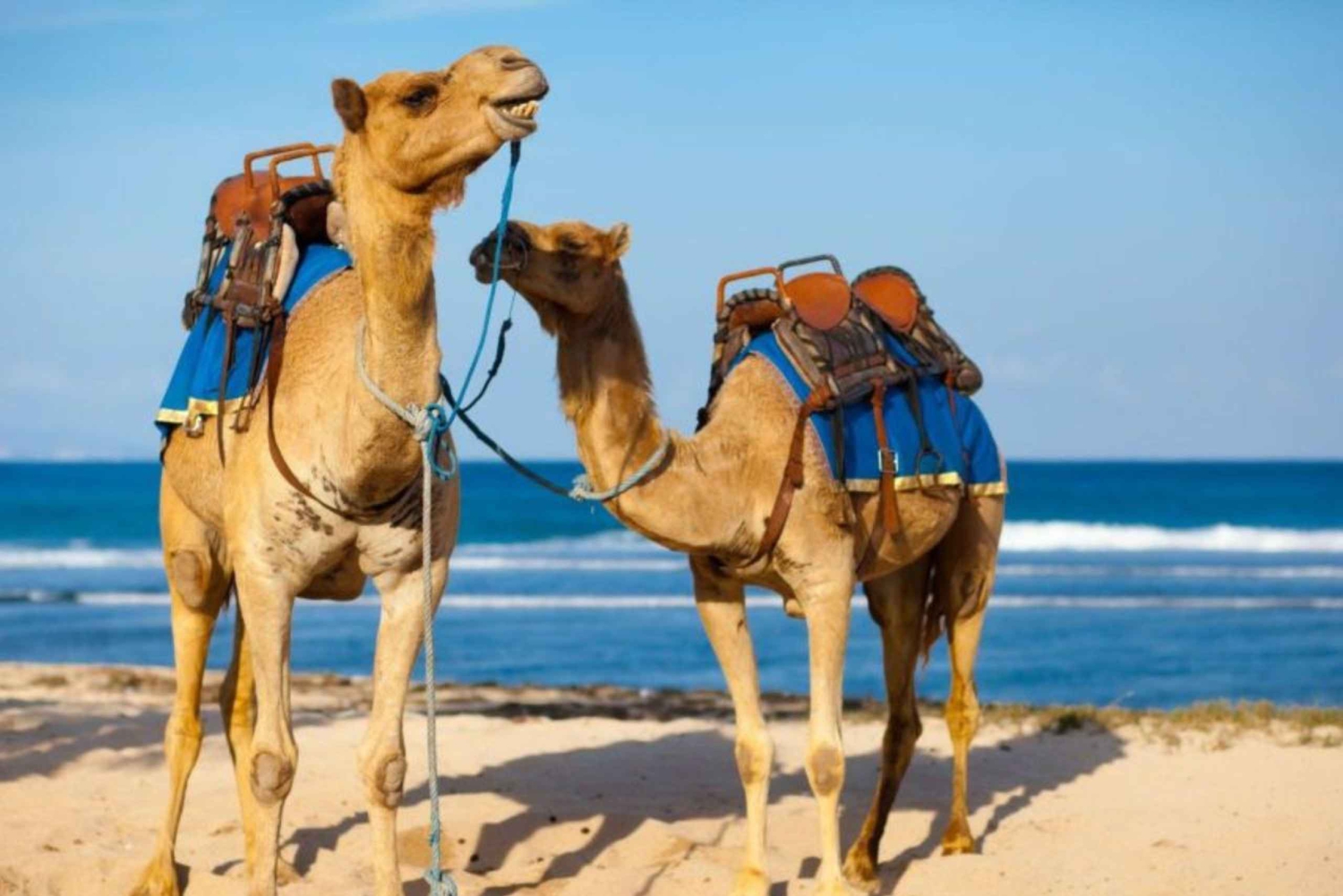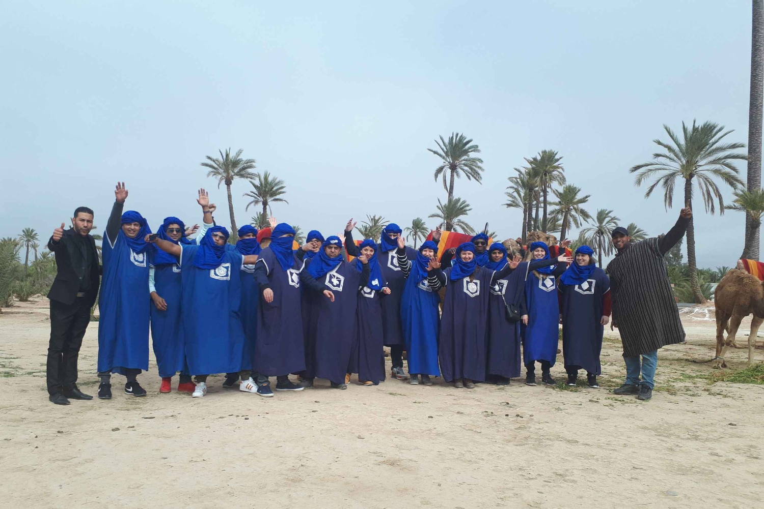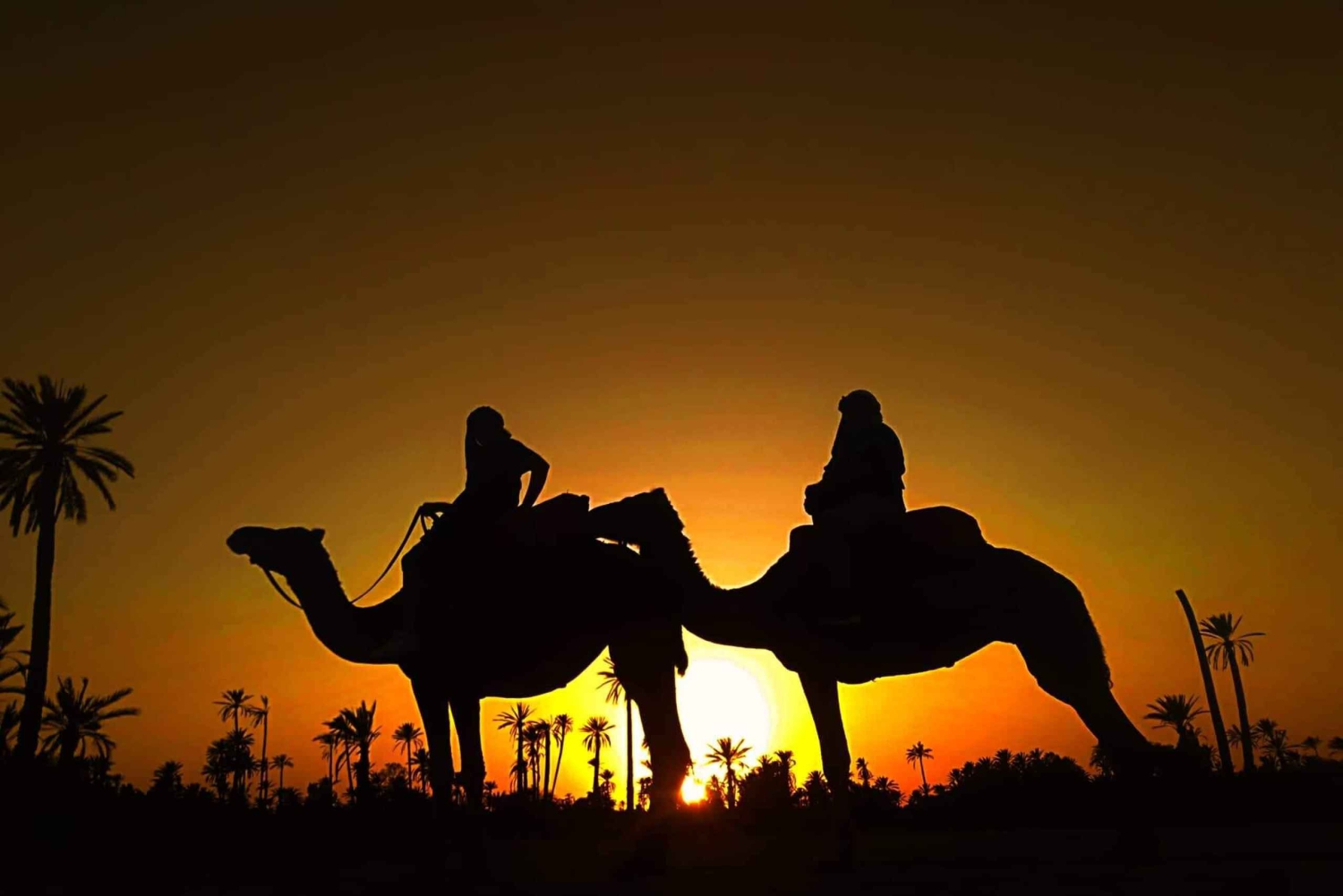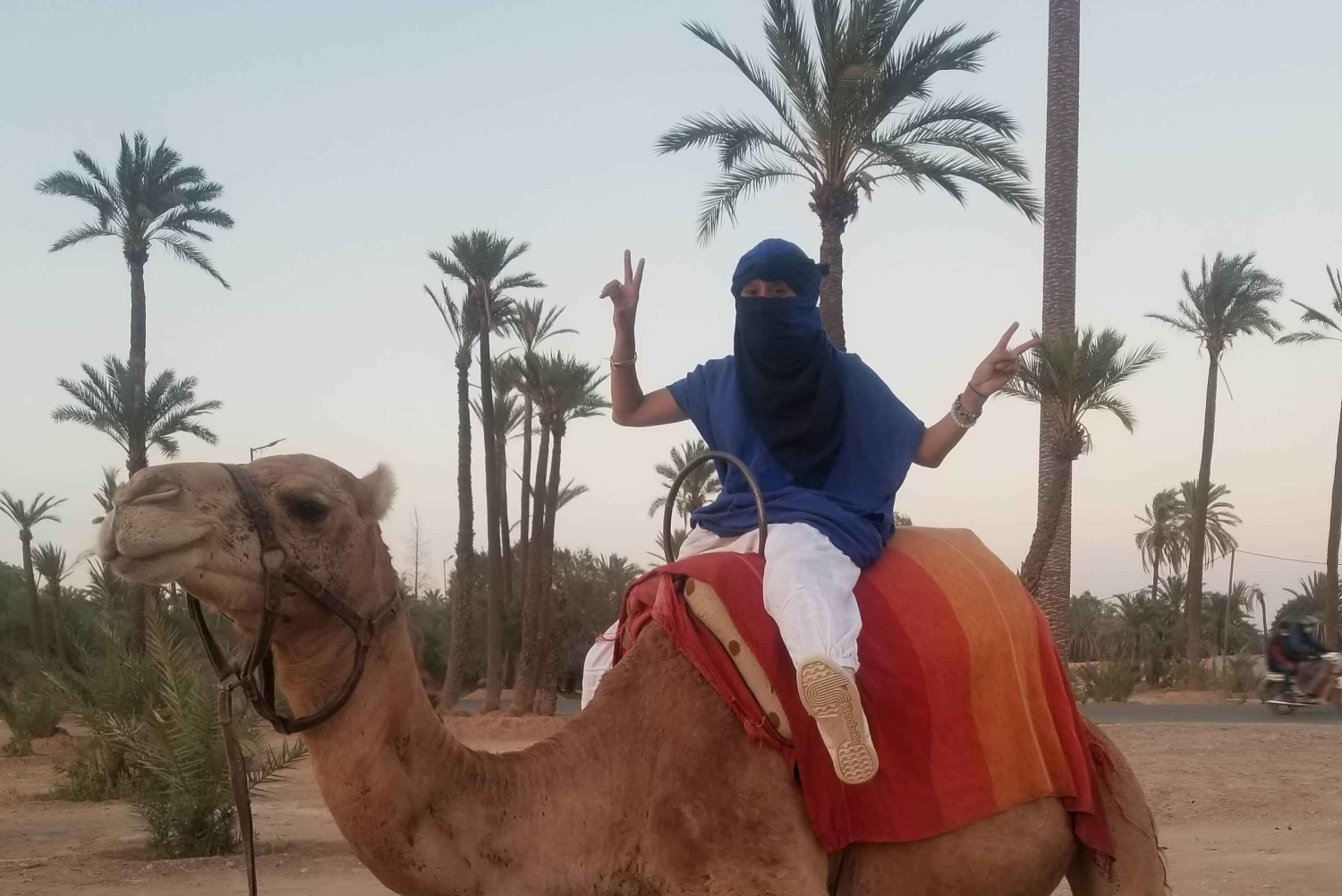 Profitez d'une excursion guidée à dos de chameau en groupe partagé dans la palmeraie de Marrakech, conçue pour les voyageurs qui n'ont pas le temps de faire l'expérience d'une promenade à dos de chameau dans le désert du Sahara. Cette excursion à dos de chameau est l'occasion de découvrir et d'apprendre la culture locale des habitants des villages qui entourent la ville impériale de Marrakech. Prenez un selfie en tenue touareg. Vous pouvez faire l'expérience d'une promenade à dos de chameau le matin ou l'après-midi et nous nous adapterons à votre temps et à votre budget. C'est pourquoi les gens peuvent faire l'expérience de cette activité culturelle étonnante pour profiter de leurs vacances au Maroc. Faites l'expérience d'une promenade à dos de chameau dans la fabuleuse palmeraie de Marrakech, cette expérience vous permettra d'explorer les environs de la ville rouge au-delà de vos espérances. Vous pouvez faire l'expérience d'une promenade à dos de chameau le matin ou l'après-midi et nous travaillerons en fonction de votre temps et de votre budget. Le foulard et la robe touareg vous sont offerts avant d'apprendre les rudiments de la conduite d'un chameau.Includes
