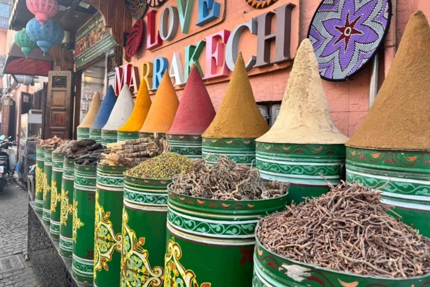 Visite guidée du quartier historique de Marrakech Visite des jardins de la Koutoubia Exploration du souk Temps libre à Jamaa el FanaImportant Information