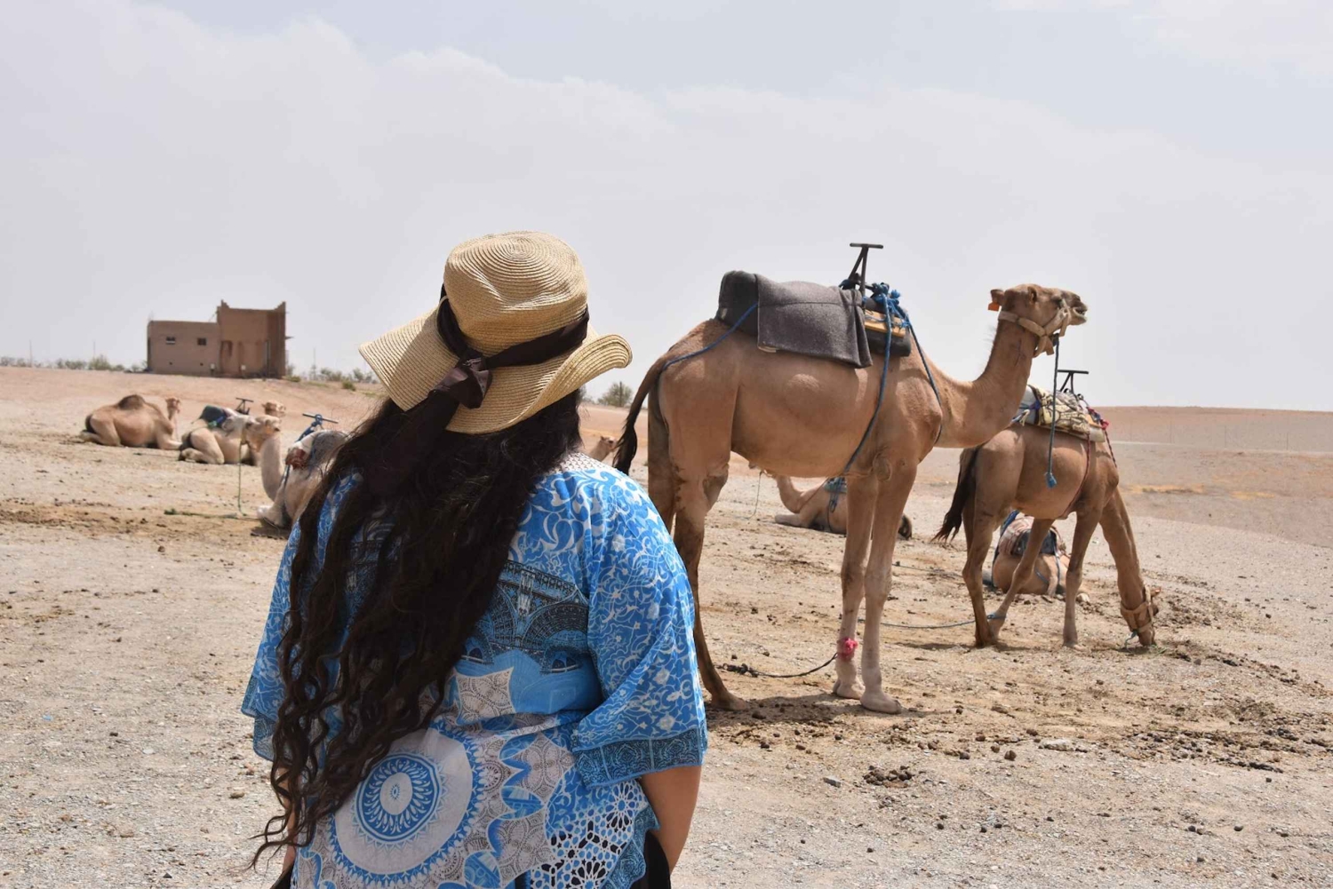 Prise en charge et retour à l'hôtel Véhicule climatisé Déjeuner dans une maison familiale berbère Eau en bouteille Thé à la menthe marocain Promenade à dos de chameau Guide professionnel localEasy cancellation