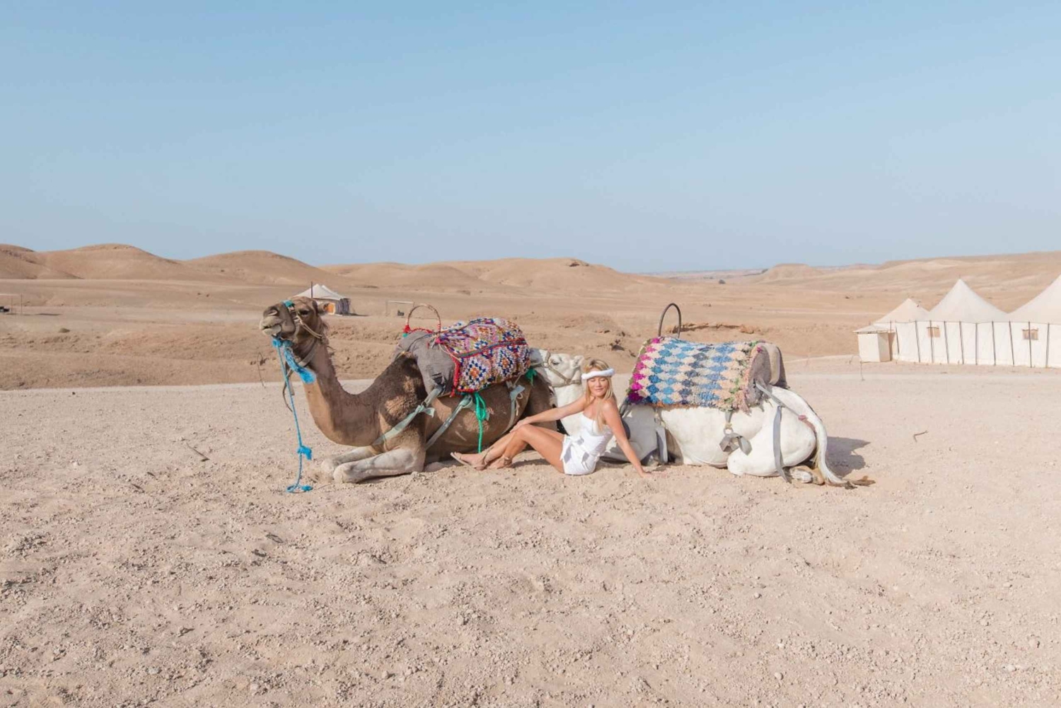 Journée complète dans le désert d'Agafay et les montagnes de l'Atlas avec des chameaux