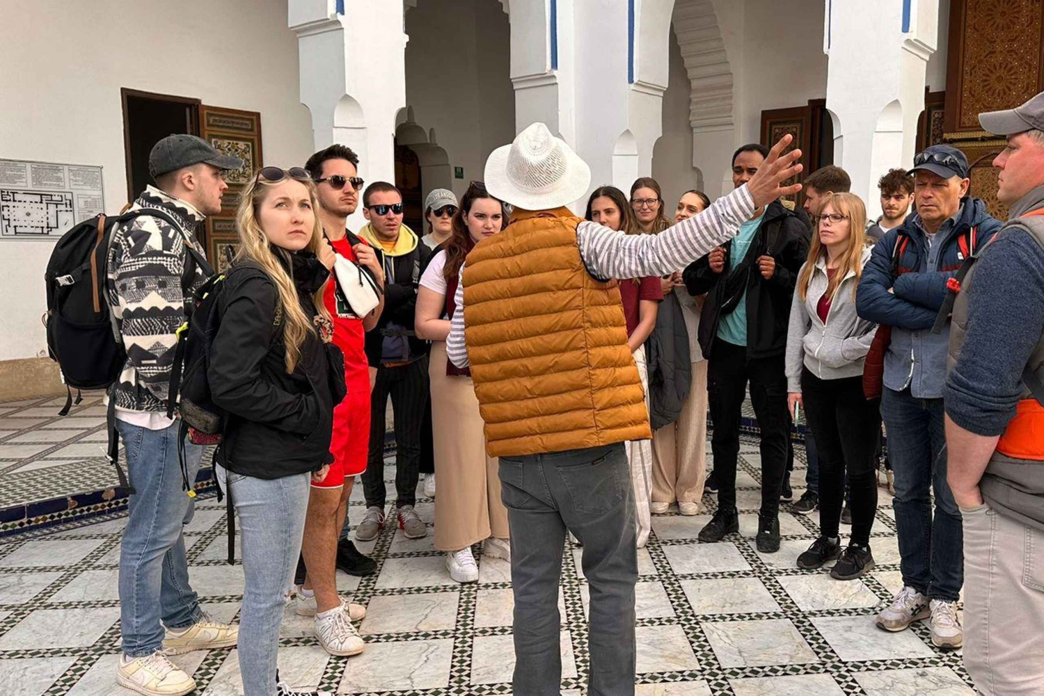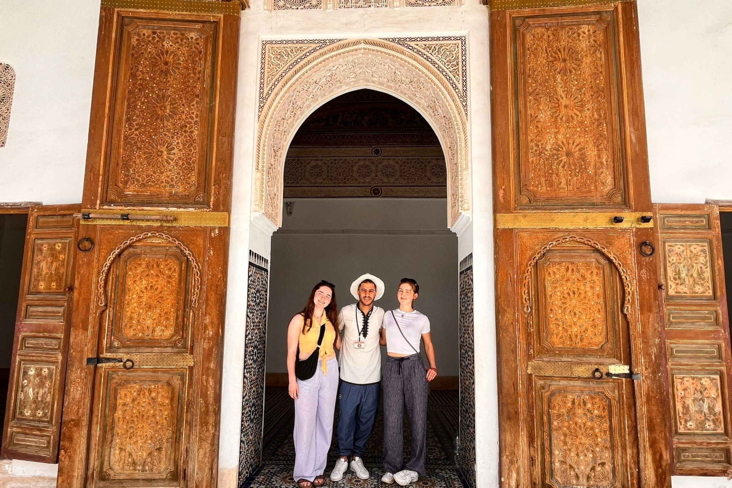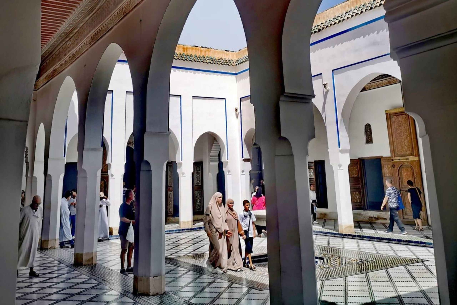 - * Cette visite dure 3 heures. * Lieu de rendez-vous devant le café Argana, place Jammee Lefna * Veuillez vous assurer d'avoir suffisamment d'argent liquide pour payer les billets. * Le prix du billet varie d'un monument à l'autre : - Au Palais de la Bahia (100dh) environ 10 euros. - A l'école Medrassa Ben Youesef (50) environ 5 euros. * L'itinéraire peut être modifié et adapté aux besoins du client.