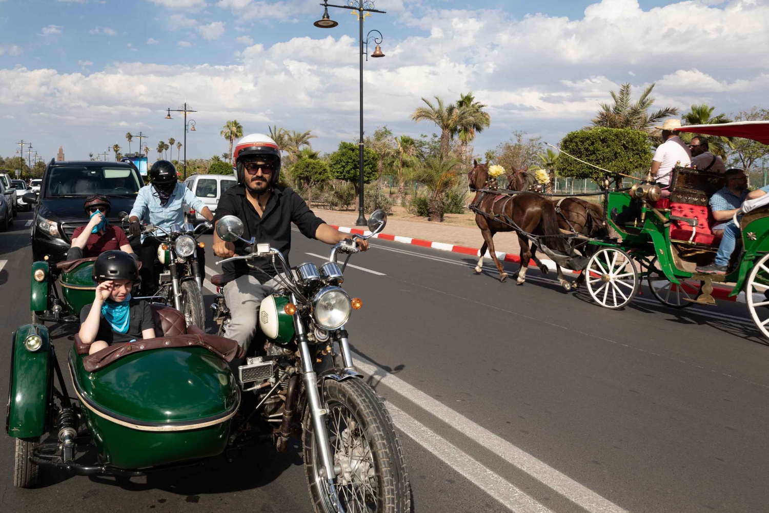 Cette promenade de trois heures vous permet de découvrir la ville en profondeur. Traversez la Médina cachée, où les habitants vivent et travaillent selon des traditions séculaires. Traversez Guéliz, le quartier Art déco qui allie le charme colonial à l'effervescence moderne. Puis, aventurez-vous dans la Palmeraie, une oasis de palmiers luxuriante qui fait l'objet d'un important programme de protection et de reboisement. En passant devant ses grandes entrées, vous aurez un aperçu des villas luxueuses qui se cachent derrière, abritant une communauté exclusive de jetsetteurs. Votre guide vous indiquera quelques demeures de célébrités. Ce tour comprend plusieurs arrêts pour découvrir la ville, comme une pause thé à la menthe dans un riad si vous n'y séjournez pas vous-même. Si votre excursion n'a pas lieu un vendredi, vous aurez également la possibilité de visiter le marché aux puces de Bab El Khemis, une véritable explosion de couleurs, de sons et de trésors cachés ! Votre guide adaptera l'expérience à vos intérêts, en partageant des histoires fascinantes et des idées en cours de route. Montez dans votre side-car vintage et profitez d'une aventure inoubliable en plein air !Includes