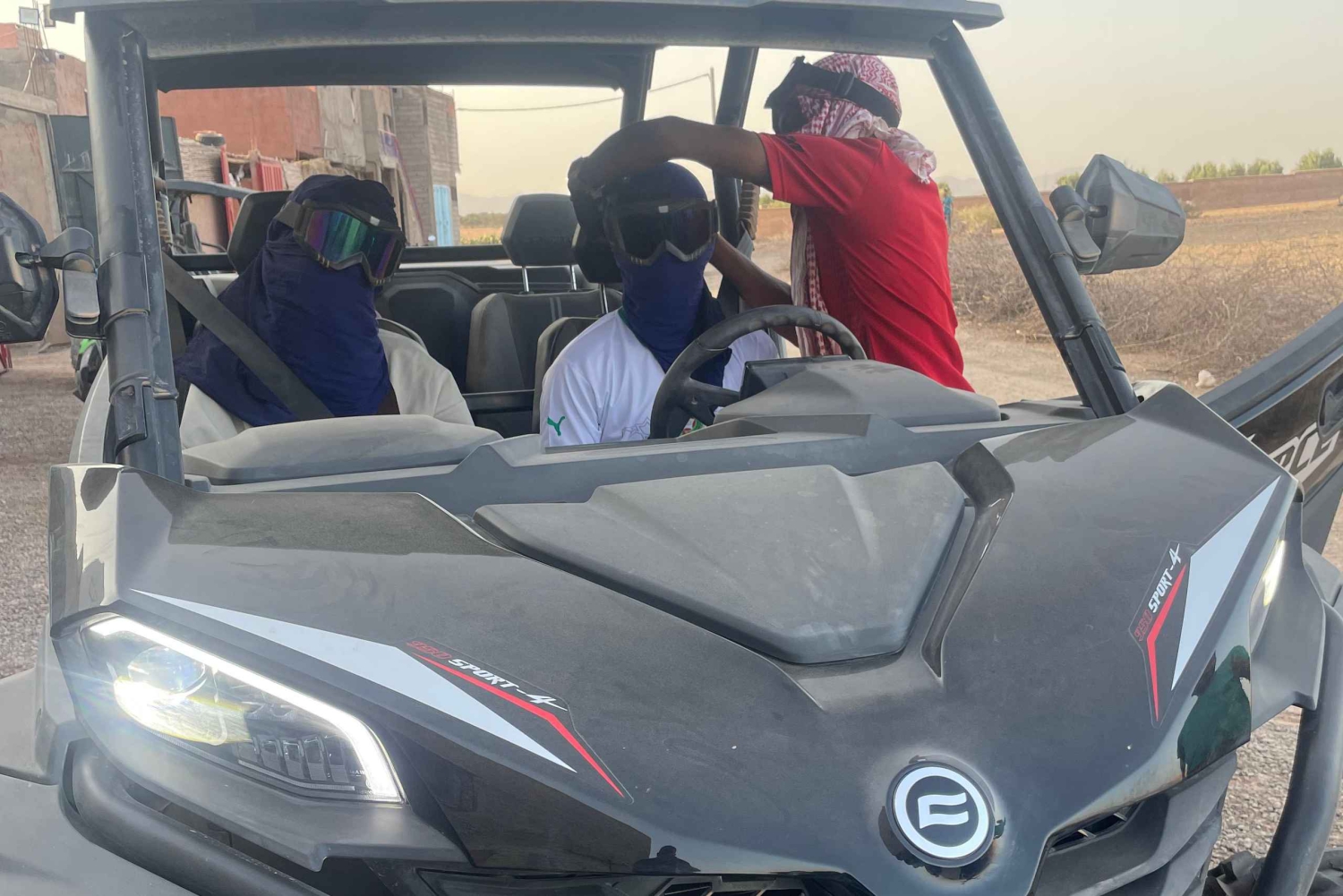 Plongez dans une aventure inoubliable à bord d’un buggy tout-terrain à travers les vastes étendues du désert d’Agafay. Parfait pour les amateurs de sensations fortes, ce véhicule de 1000 cm3 vous permettra d’explorer des terrains accidentés et de vivre des moments riches en adrénaline. Cette activité Est privée. Votre excursion de demi-journée vous emmène au cœur du désert d’Agafay, un site spectaculaire aux portes de Marrakech. Un guide expérimenté vous guidera tout au long de votre parcours, vous fournissant un briefing complet et l’équipement nécessaire pour garantir votre confort et votre sécurité, y compris casque, lunettes, cagoule et veste imperméable si nécessaire. À travers des paysages sauvages, traversez des oueds et des collines désertiques, tout en admirant les panoramas magnifiques sur les montagnes de l’Atlas, parfois enneigées selon la saison. Faites une pause conviviale dans une maison locale pour savourer un thé et des crêpes traditionnelles. Rejoignez-nous pour vivre cette aventure exceptionnelle et laissez-vous séduire par la magie du désert d’Agafay, pour une expérience pleine de découvertes et d’émotions.Includes