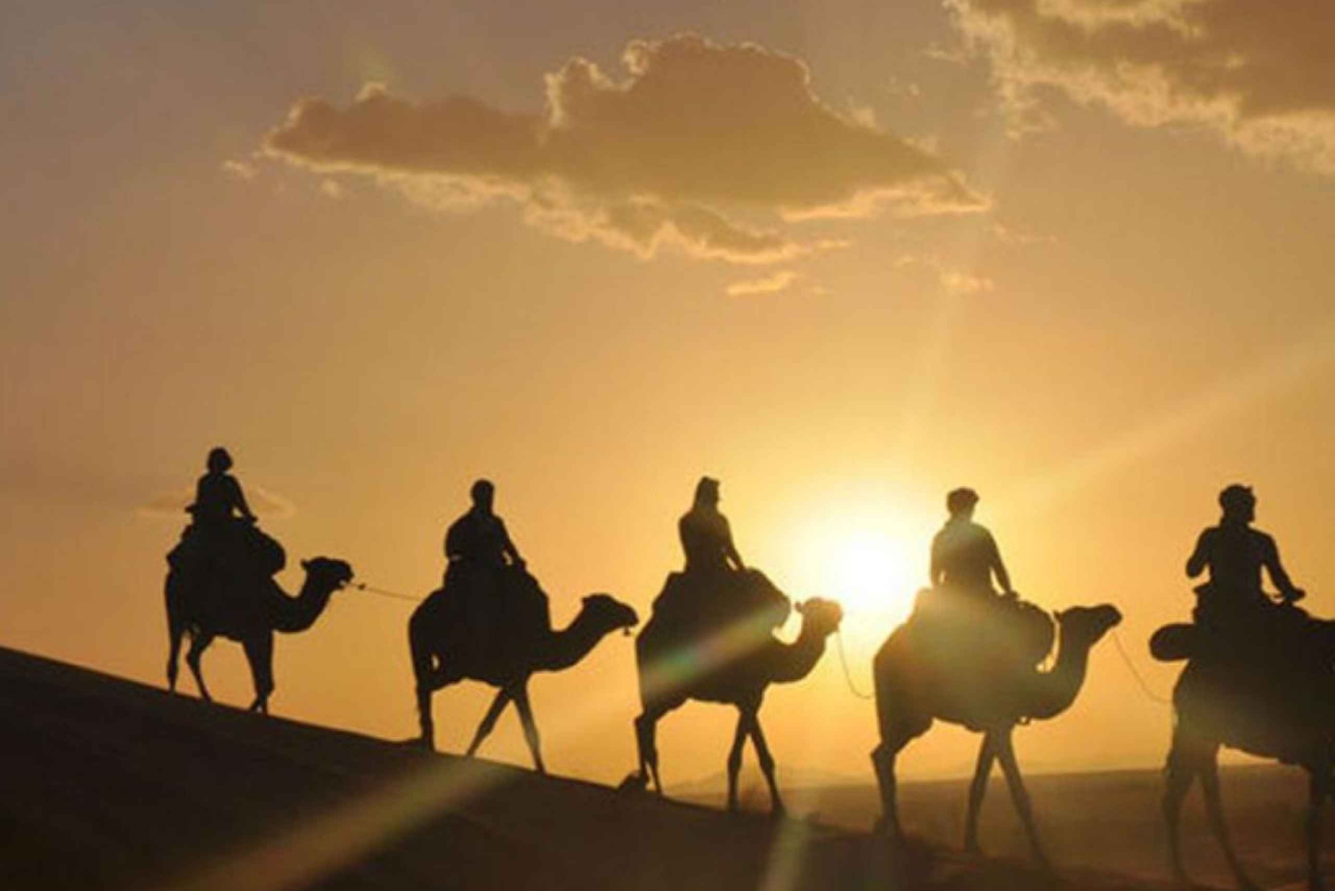 • Échappez à l'agitation de Marrakech et laissez-vous envoûter par la magie du désert d'Agafay, où les dunes dorées rencontrent les sommets majestueux de l'Atlas. Plus qu'une simple excursion, c'est un voyage à travers l'aventure, la tradition et des moments inoubliables. • Votre expérience commence par la visite d'une coopérative locale d'huile d'argan, où les femmes amazighes partagent fièrement leur savoir-faire ancestral. Goûtez aux produits naturels fabriqués de leurs mains et découvrez l'héritage qui se cache derrière « l'or liquide » du Maroc. • Au coucher du soleil, le désert se transforme en un chef-d'œuvre à couper le souffle. Les couleurs chaudes du coucher de soleil se fondent avec la silhouette des montagnes de l'Atlas, créant l'un des panoramas les plus magiques que vous aurez l'occasion d'admirer. • La soirée vous accueille avec la véritable hospitalité amazighe sous une tente traditionnelle. Savourez un festin marocain fait maison préparé par les femmes locales, composé de tajines aromatiques, de pain frais, de pâtisseries sucrées et de thé à la menthe rafraîchissant. • Votre soirée atteint son apogée au rythme des tambours amazighs, des danses envoûtantes et des chants émouvants sous un ciel étoilé. Enfin, retournez à Marrakech le cœur comblé, l'esprit exalté et la mémoire enrichie par la magie intemporelle d'Agafay.Includes
