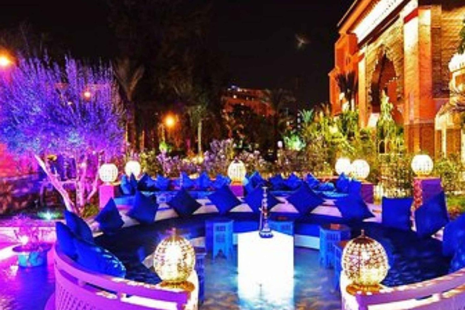 Vous serez pris en charge à votre hôtel ou au point le plus proche en voiture, et vous conduirez à travers les côtés de Marrakech pour découvrir à quoi ressemble la ville la nuit. Notre chauffeur vous accompagnera pour vous montrer les endroits cachés que vous ne verrez peut-être pas le jour. En traversant l'ancienne Médina de Marrakech et sa nouvelle ville ou ce que nous appelons Gueliz, vous découvrirez les énormes écarts entre les niveaux de vie de chaque partie de la population des deux côtés de Marrakech. Après avoir eu une idée générale de la vie nocturne dans les différents quartiers de Marrakech, nous irons dîner dans un restaurant populaire près de la place principale de Gueliz, afin d'avoir l'opportunité de découvrir ce qui s'y passe pendant que vous mangez. Ensuite nous irons dans le quartier principal de la nouvelle ville, qui est un lieu d'hivernage pour boire un café ou un jus de fruit, dans ce quartier vous pouvez voir la vie moderne comme les grands restaurants, les boîtes de nuit, les casinos et les gens riches dans leurs voitures de luxe. Si vous buvez de l'alcool, nous pouvons vous déposer dans l'un des bars qui existent dans les environs et venir vous chercher plus tard. Vous rentrerez à l'hôtel avec de nouvelles connaissances sur la vie nocturne à Marrakech.Includes